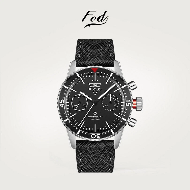 MERKUR Men Chronograph Watch 38MM Sport Manual Wind Mechanical Wristwatch Black