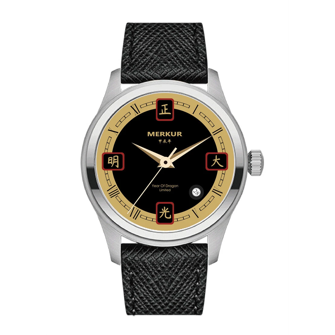 MERKUR Men Fashion Watch 38MM Manual Wind Mechanical Wristwatch Date M01D