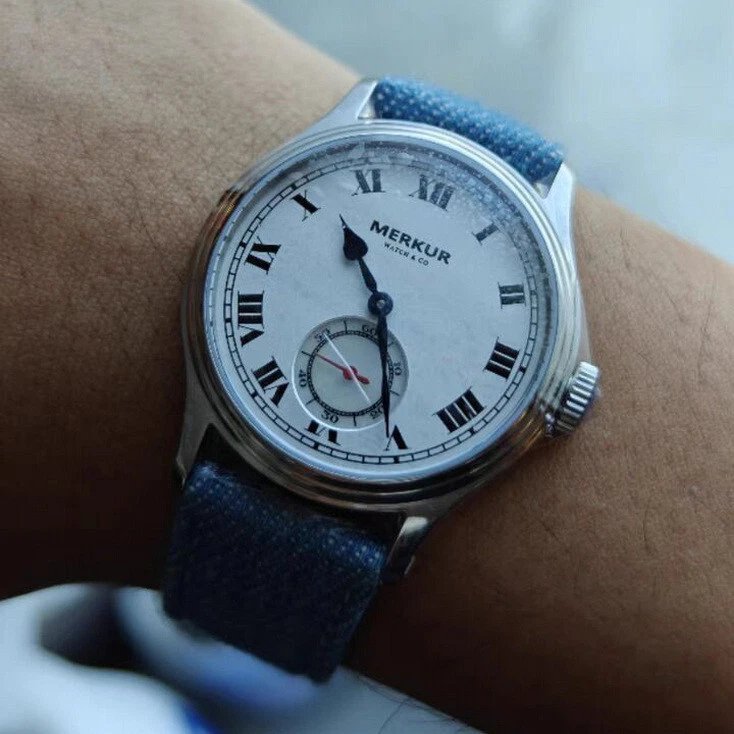 MERKUR Men Pilot Watch 38MM Manual Winding Mechanical Wristwatch MOP Second Dial