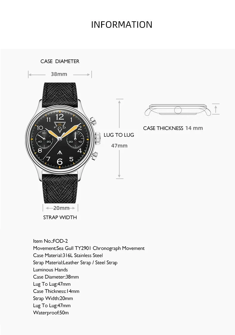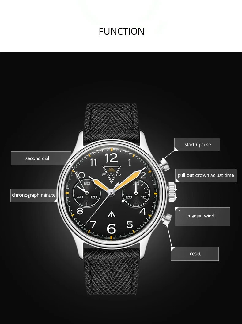 MERKUR Mens Chronograph Watches FOD Watch Hand Wind Mechanical Luminous TY2901