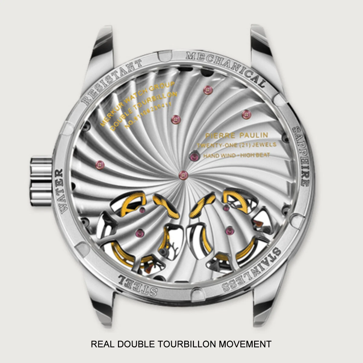 MERKUR Men Luxury Watch Real Double Tourbillon Mechanical Wristwatch Roman Scale