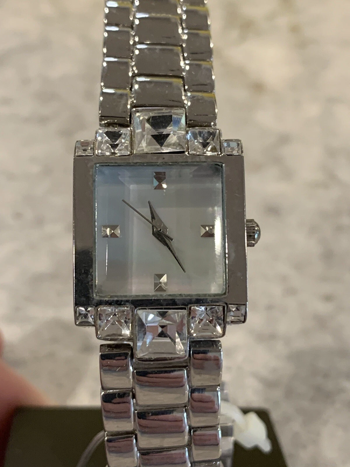 Merona’s Women’s Watch Silver tone W/Mother Of Pearl Face & Rhinstones