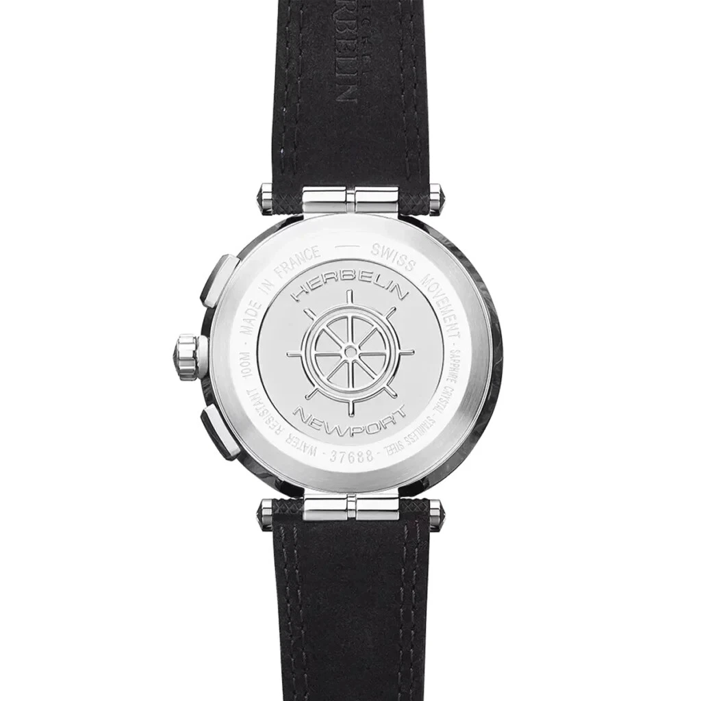Michel Herbelin Newport 37688AG65 Mens Leather Strap Black Choronograph Watch