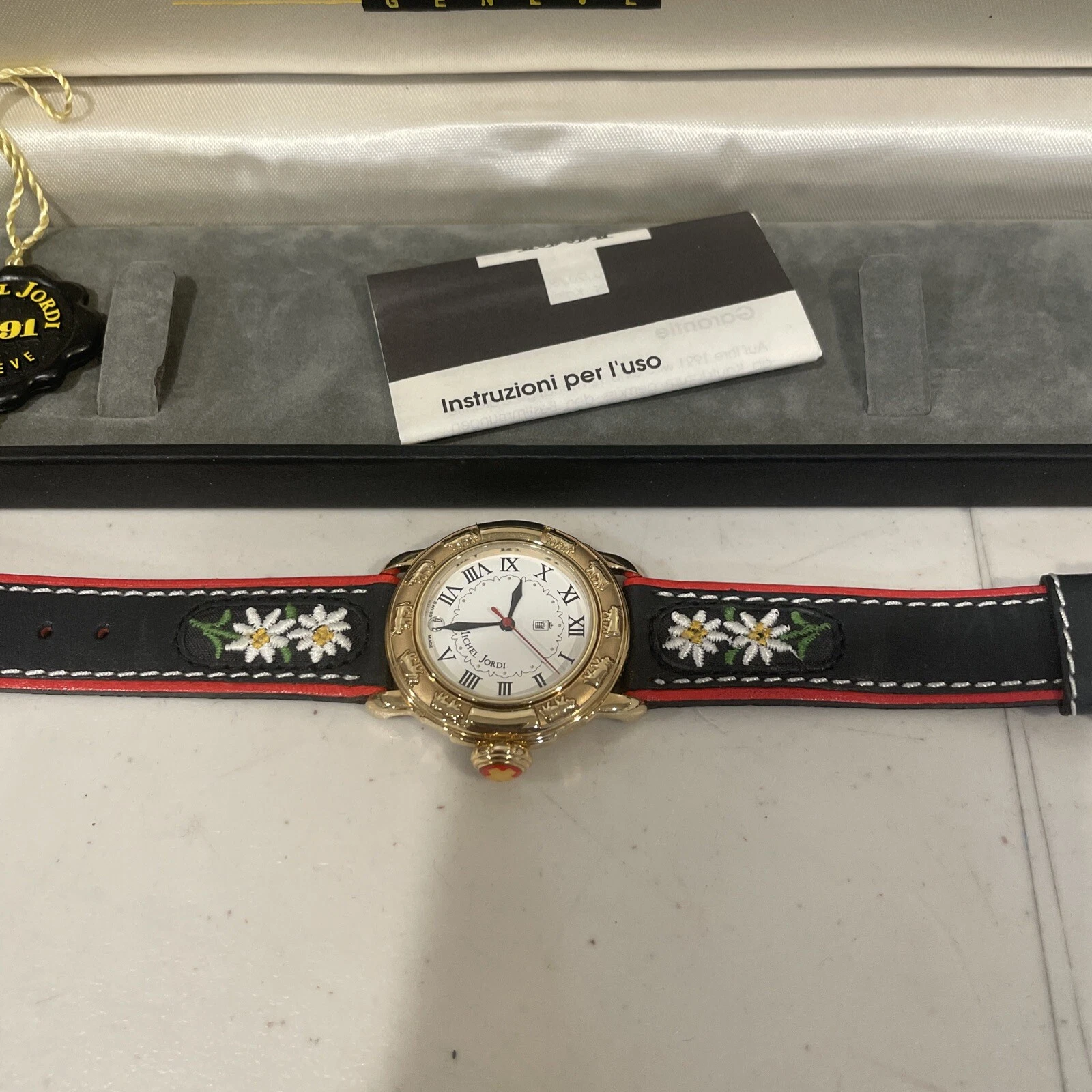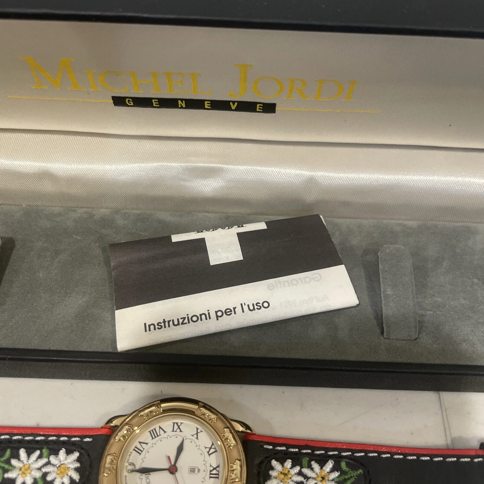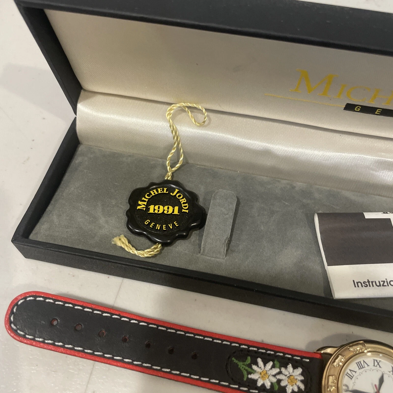 MICHEL JORDI Women's Watch Vintage Gold Tone 1991 Quartz Leather Swiss