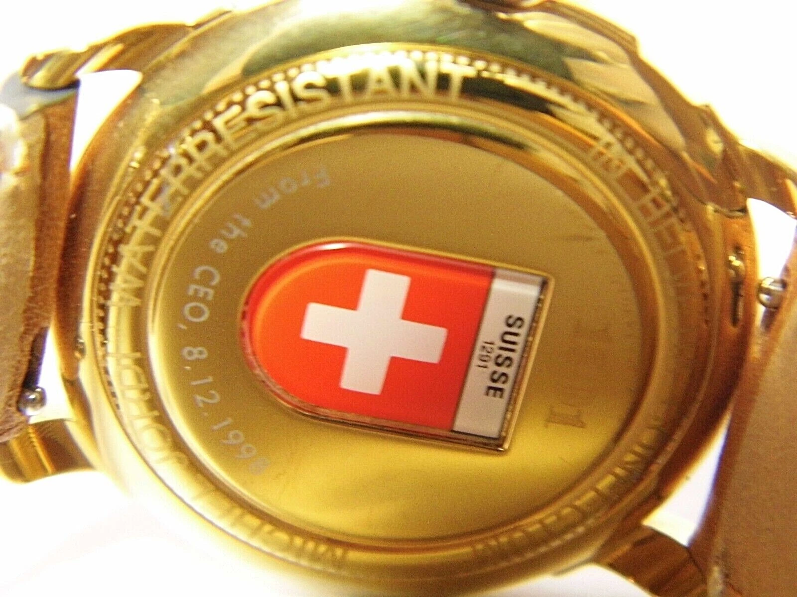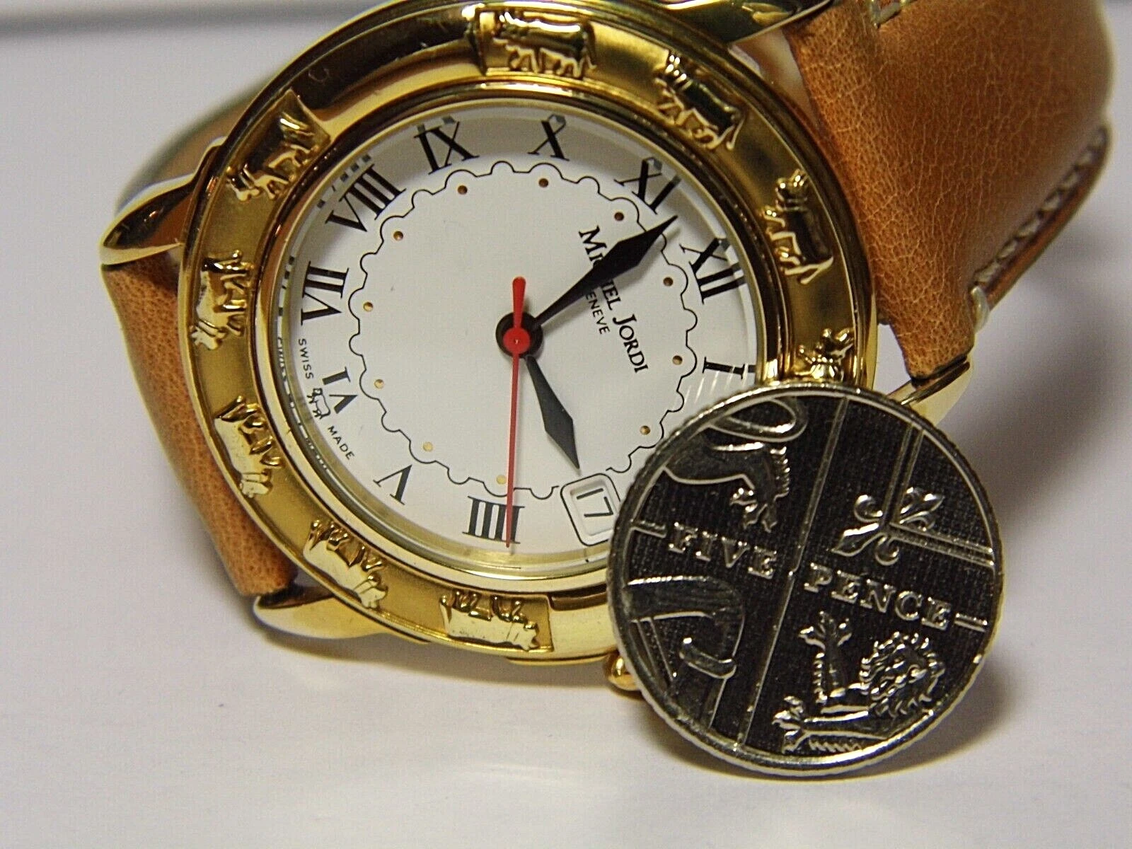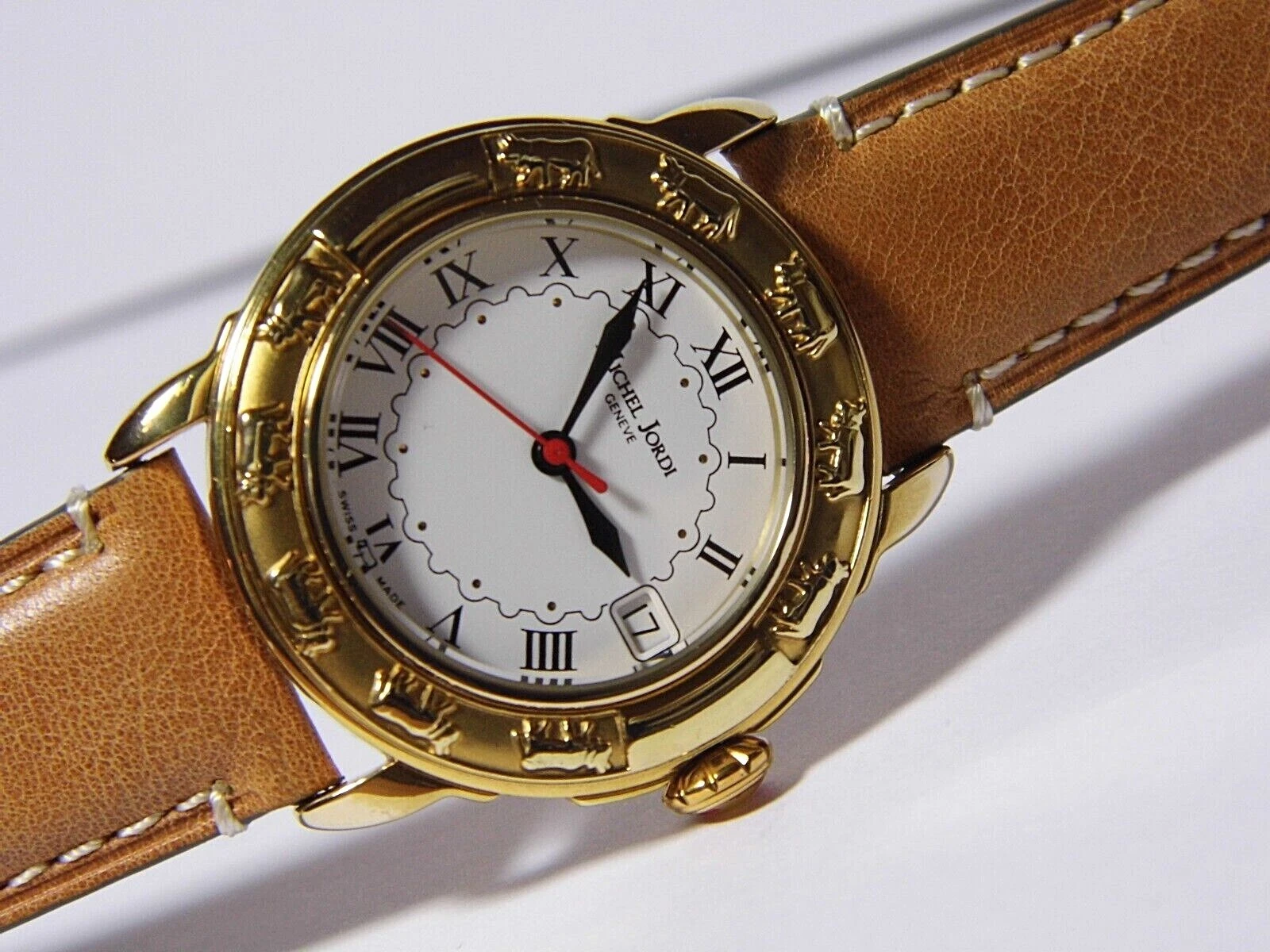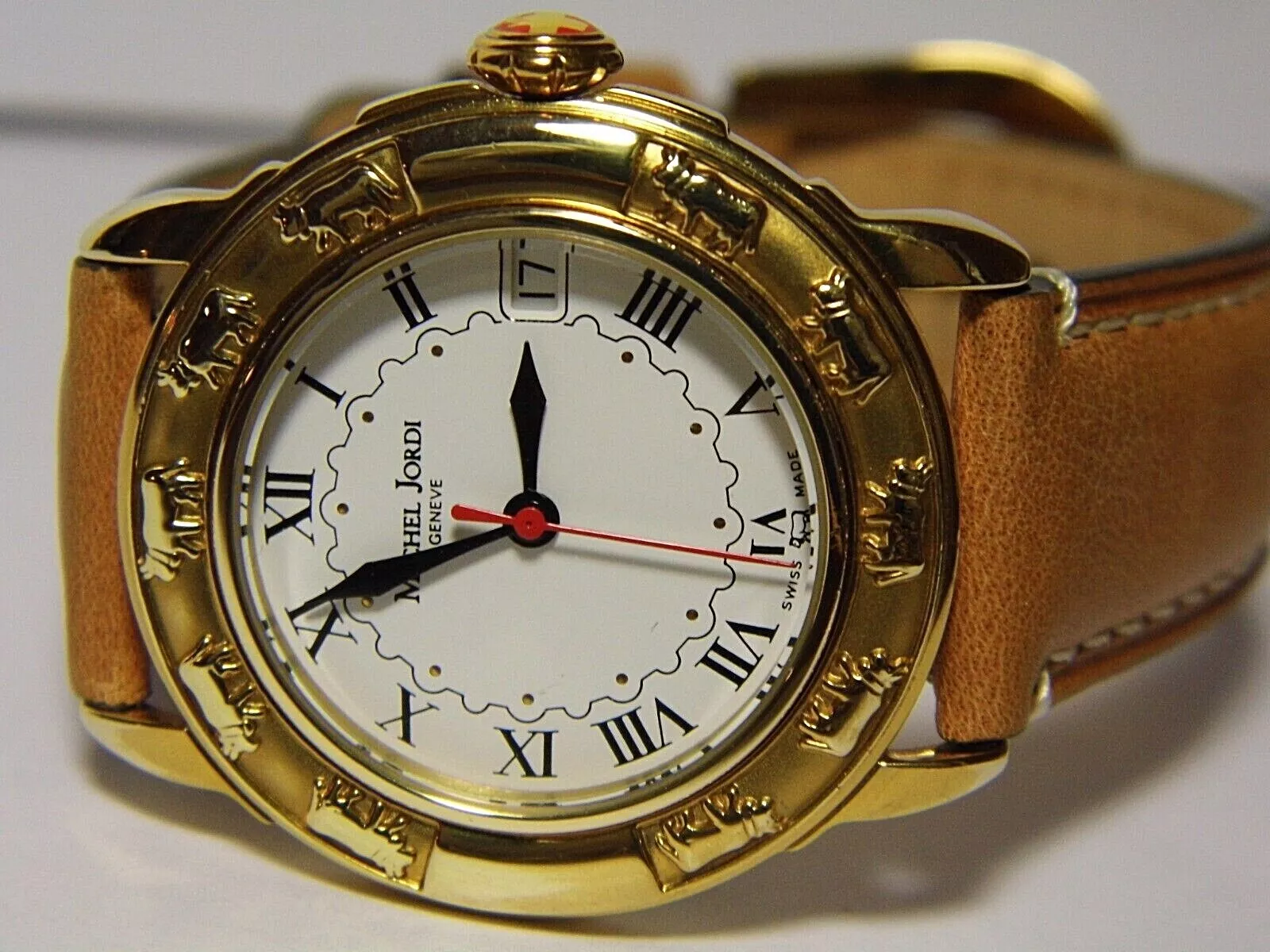 MICHEL JORDI ETHNO 1998 CUVÉE RARE S/STEEL G/PTD.SWISS 7 JEWEL WATCH+BOX+BELTBAG