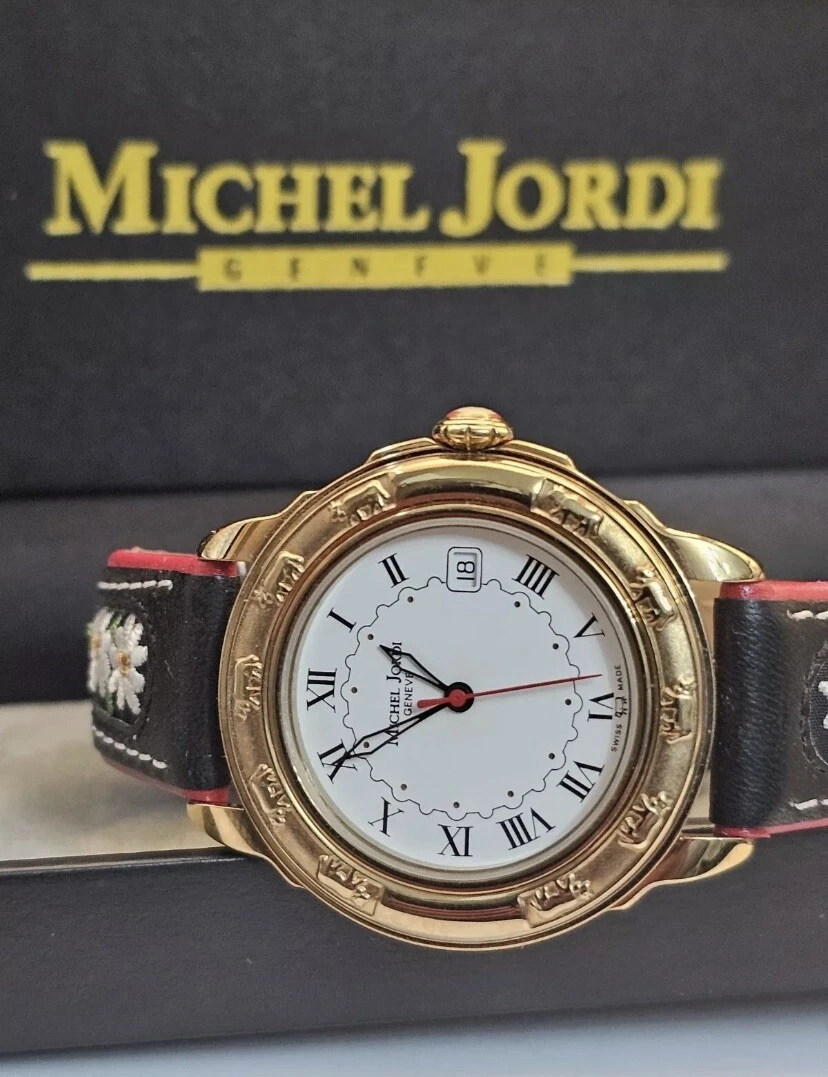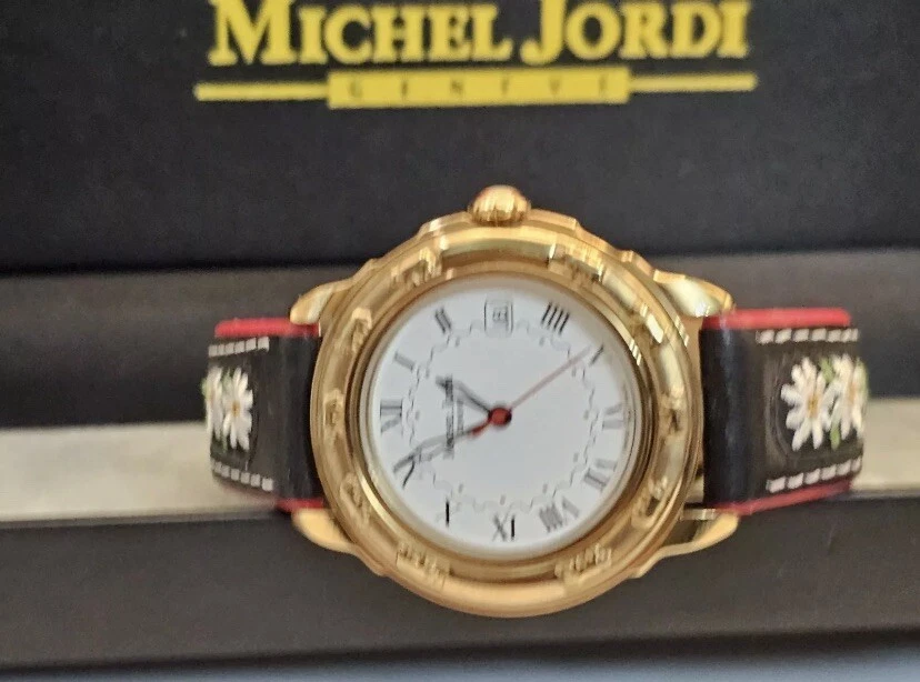 *NEW* MICHEL JORDI ETHNO CUVÉE RARE GOLD PLATED WATCH BOX & PAPERS