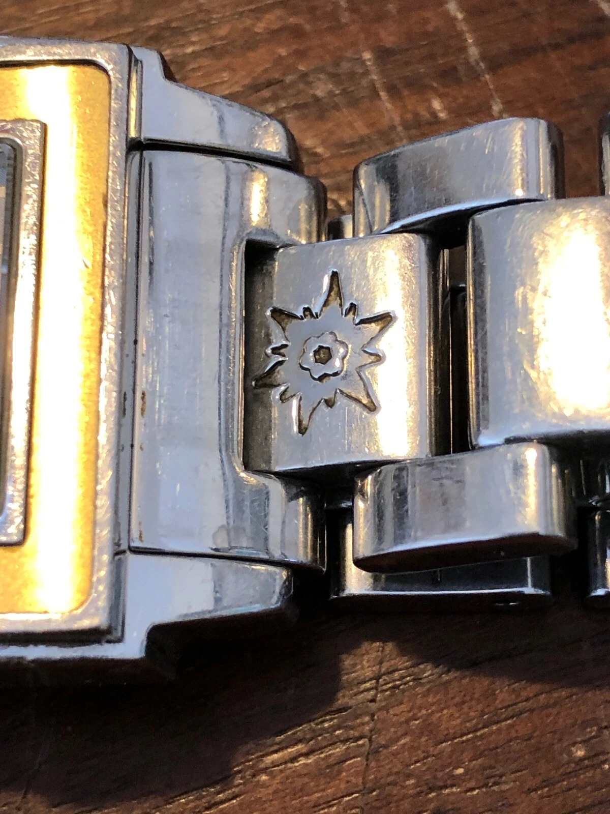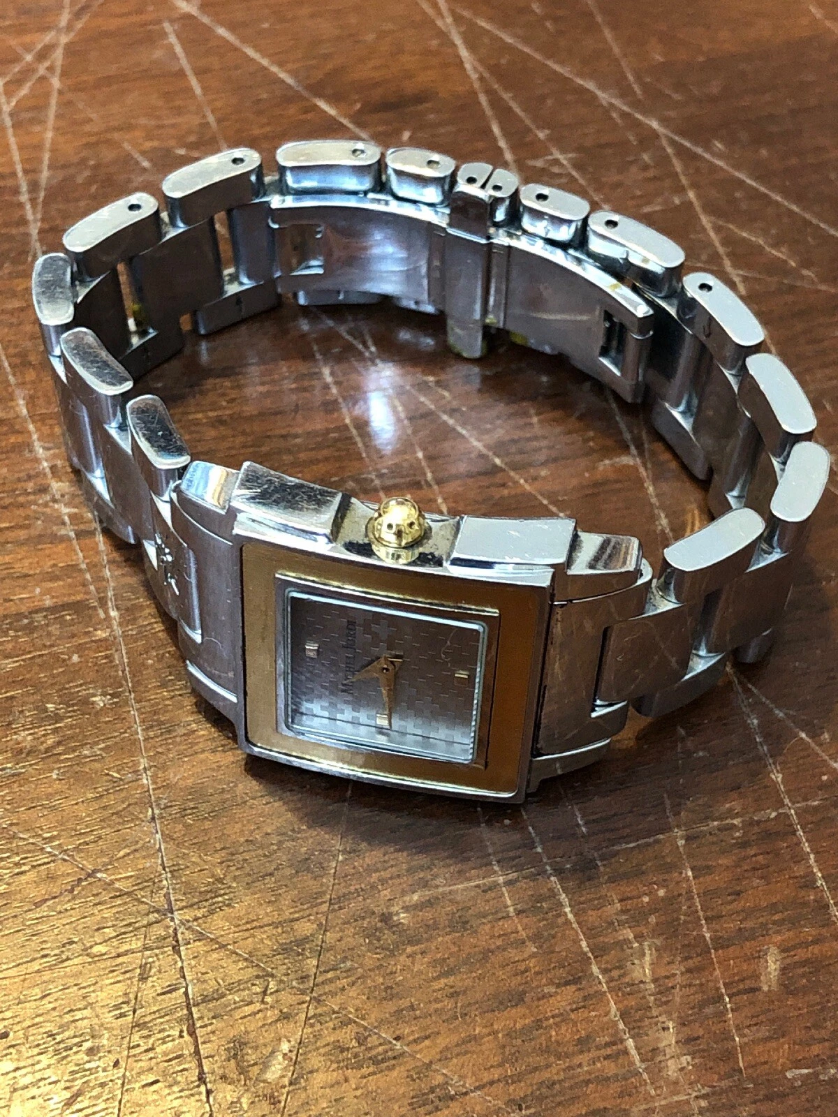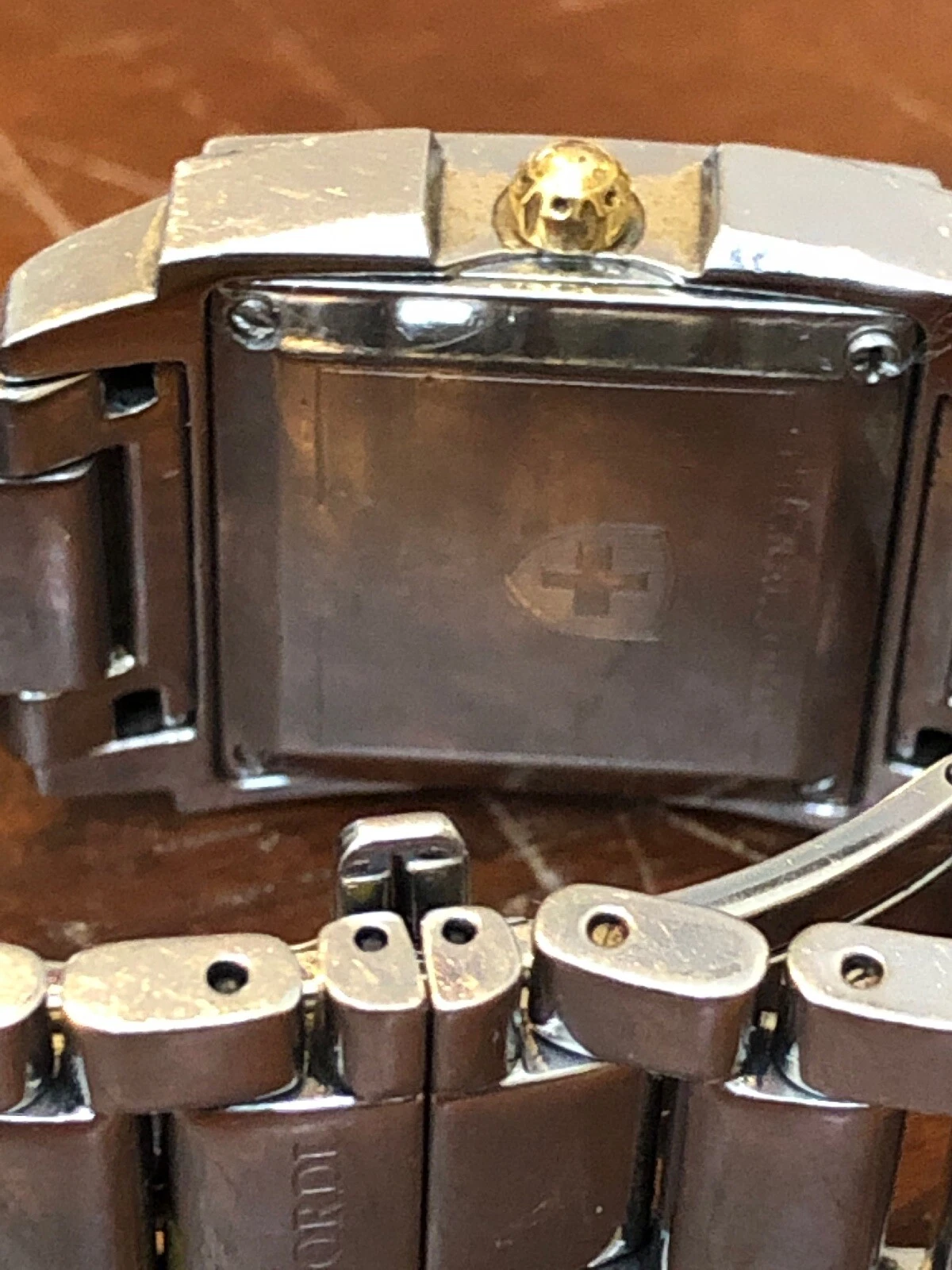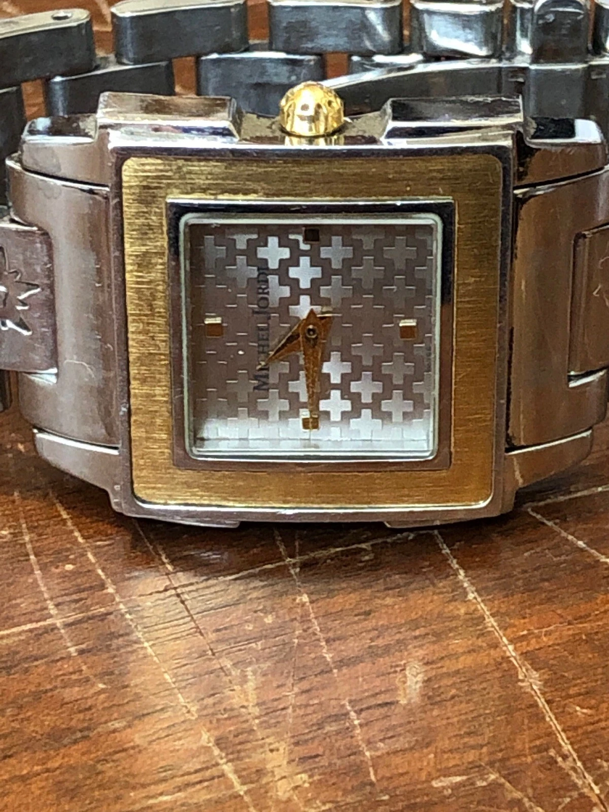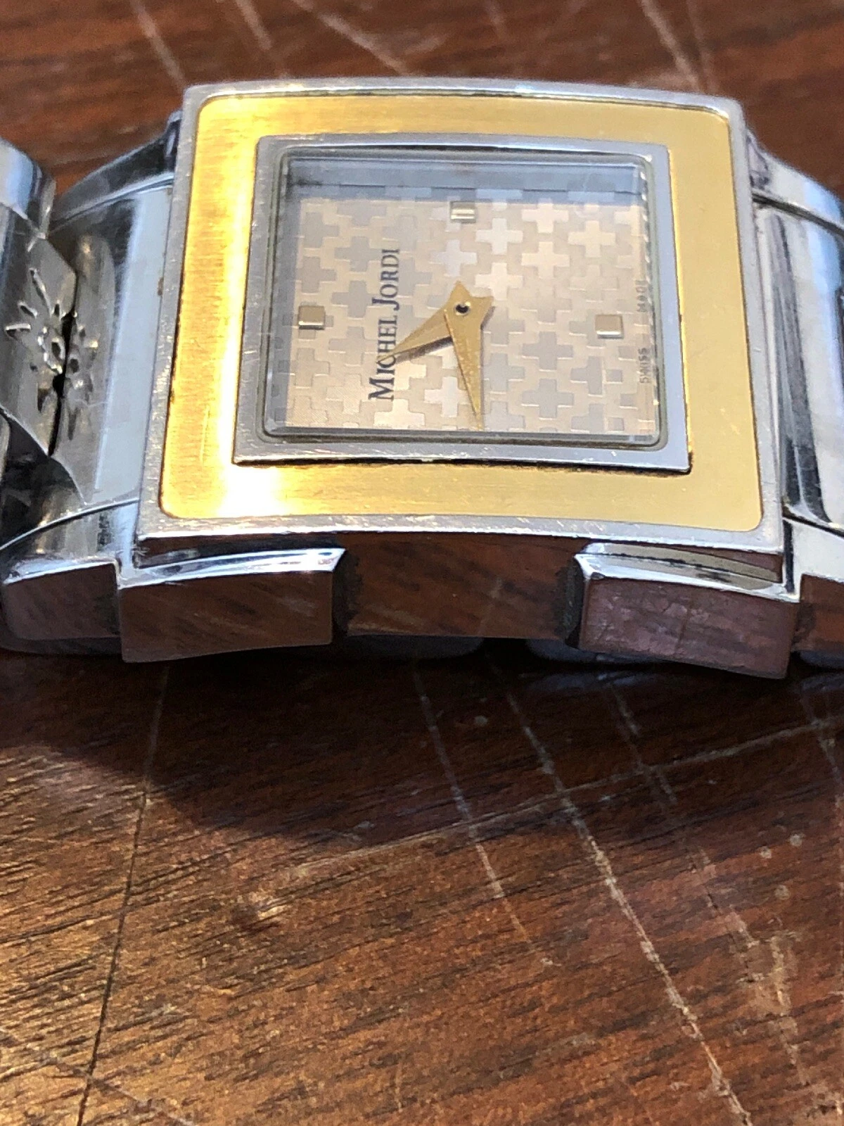 Rare Michel Jordi Square Unisex Watch Two Tone Gold & Steel Red.2002