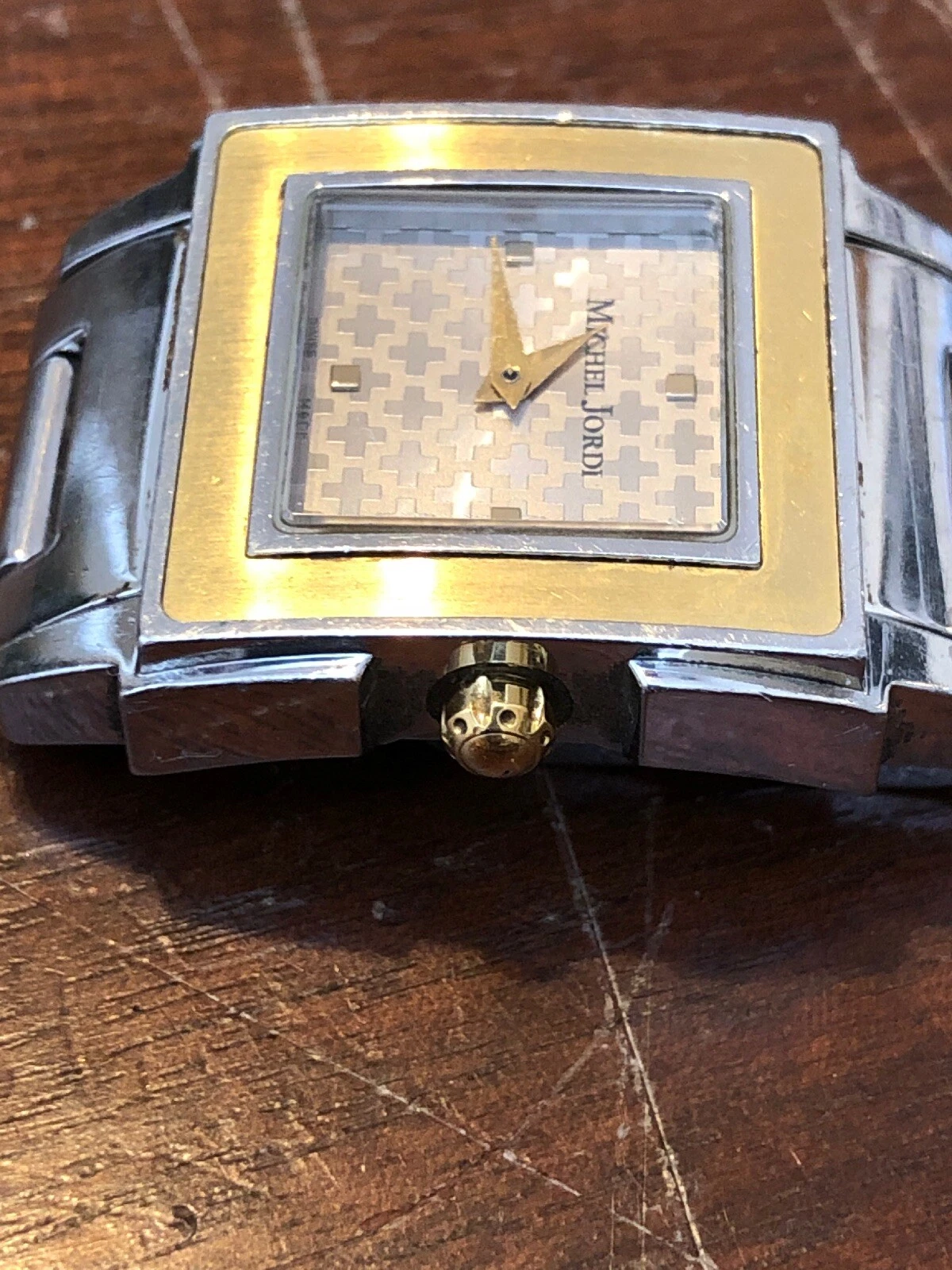 Rare Michel Jordi Square Unisex  Watch Two Tone Gold & Steel Red.2002