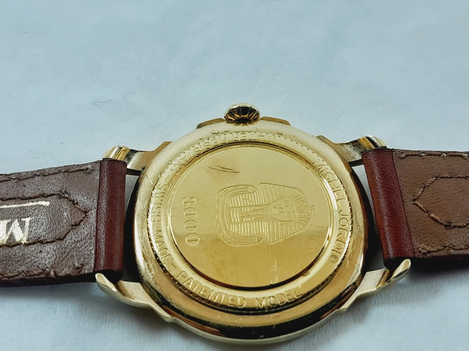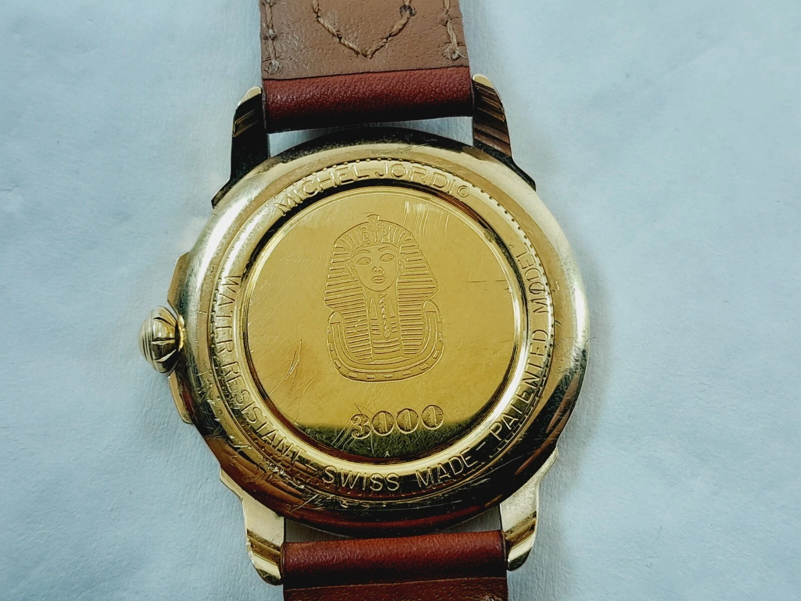 MICHEL JORDI 3000 MEN'S WATCH EGYPTIAN HIEROGLYPHS VINTAGE 90s GOLD PLATED RARE