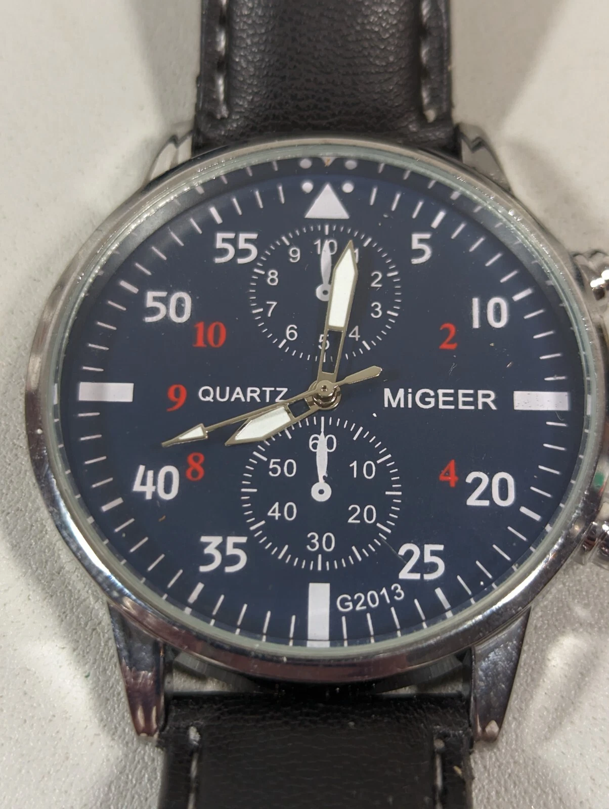 Mens Migeer Blue Dial Silver Tone Round Case Black Band Watch 8 Inch