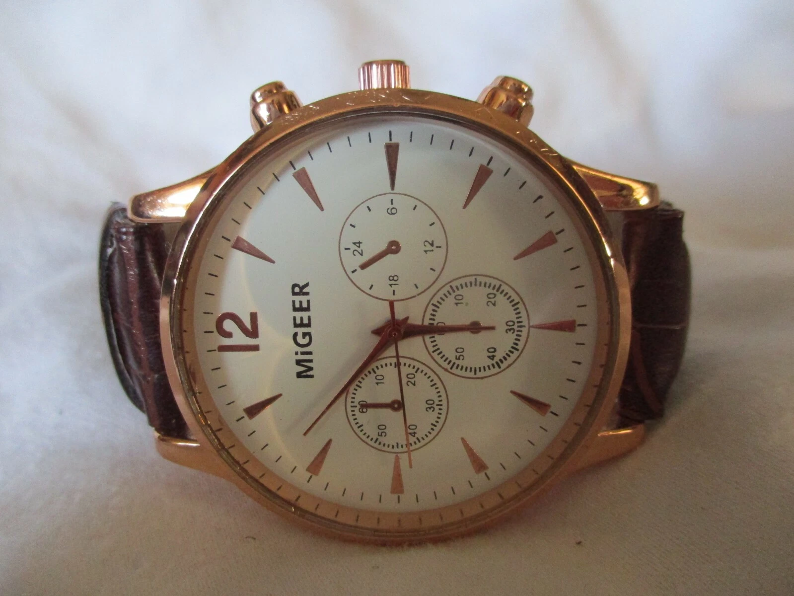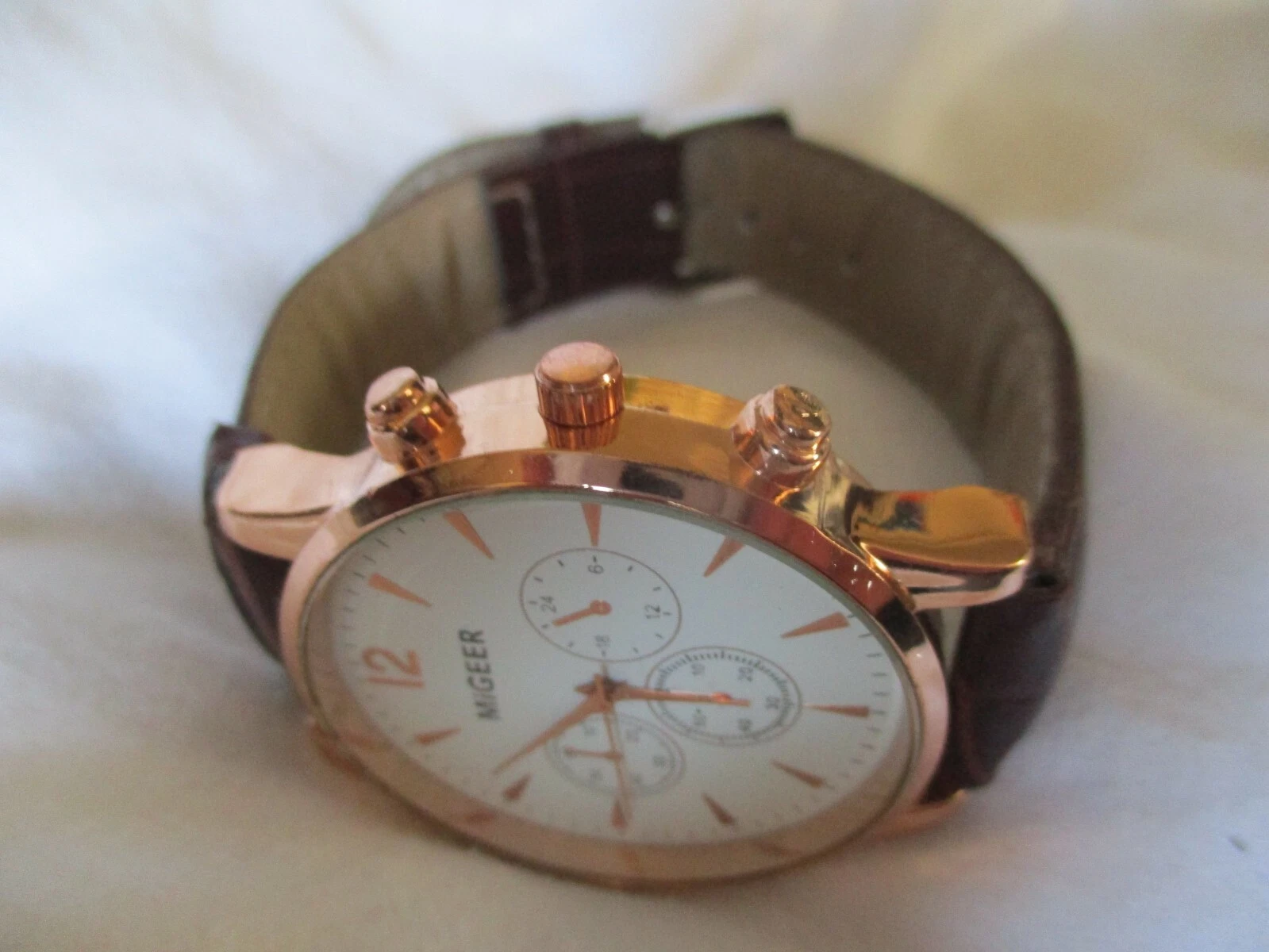 Migeer Brown & Gold Toned Wristwatch w/ Adjustable Buckle Band