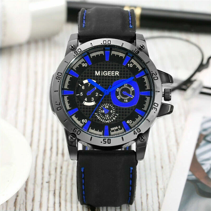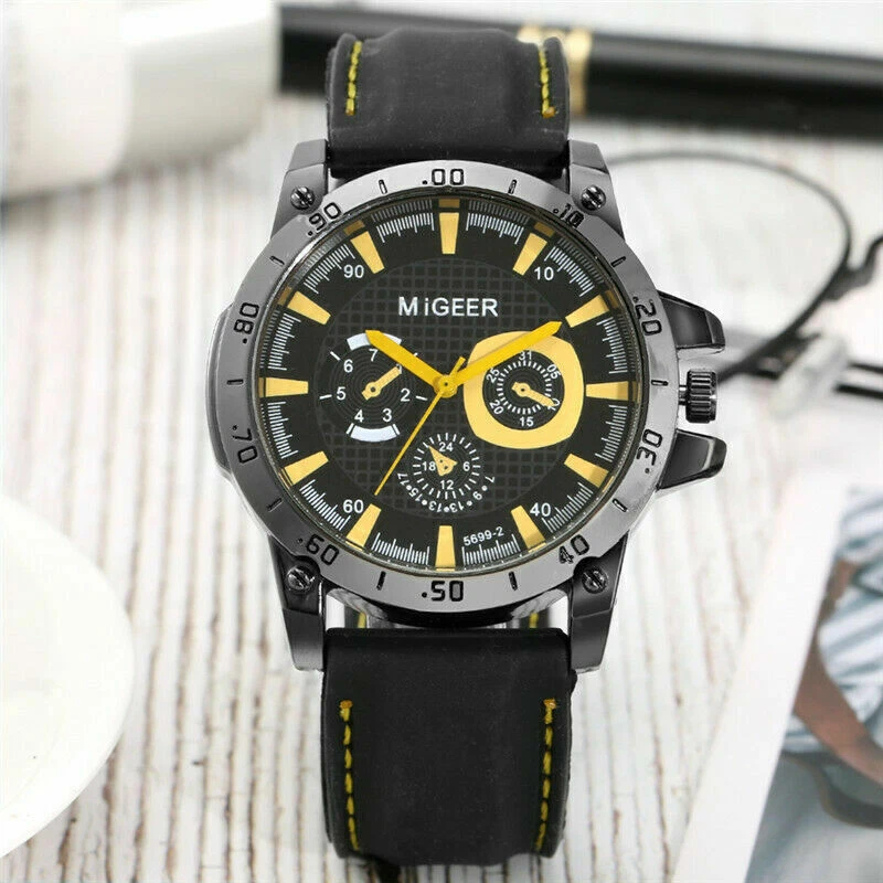 MIGEER Casual Watch Men's Sport Military Quartz Wristwatch Silicone Bracelet