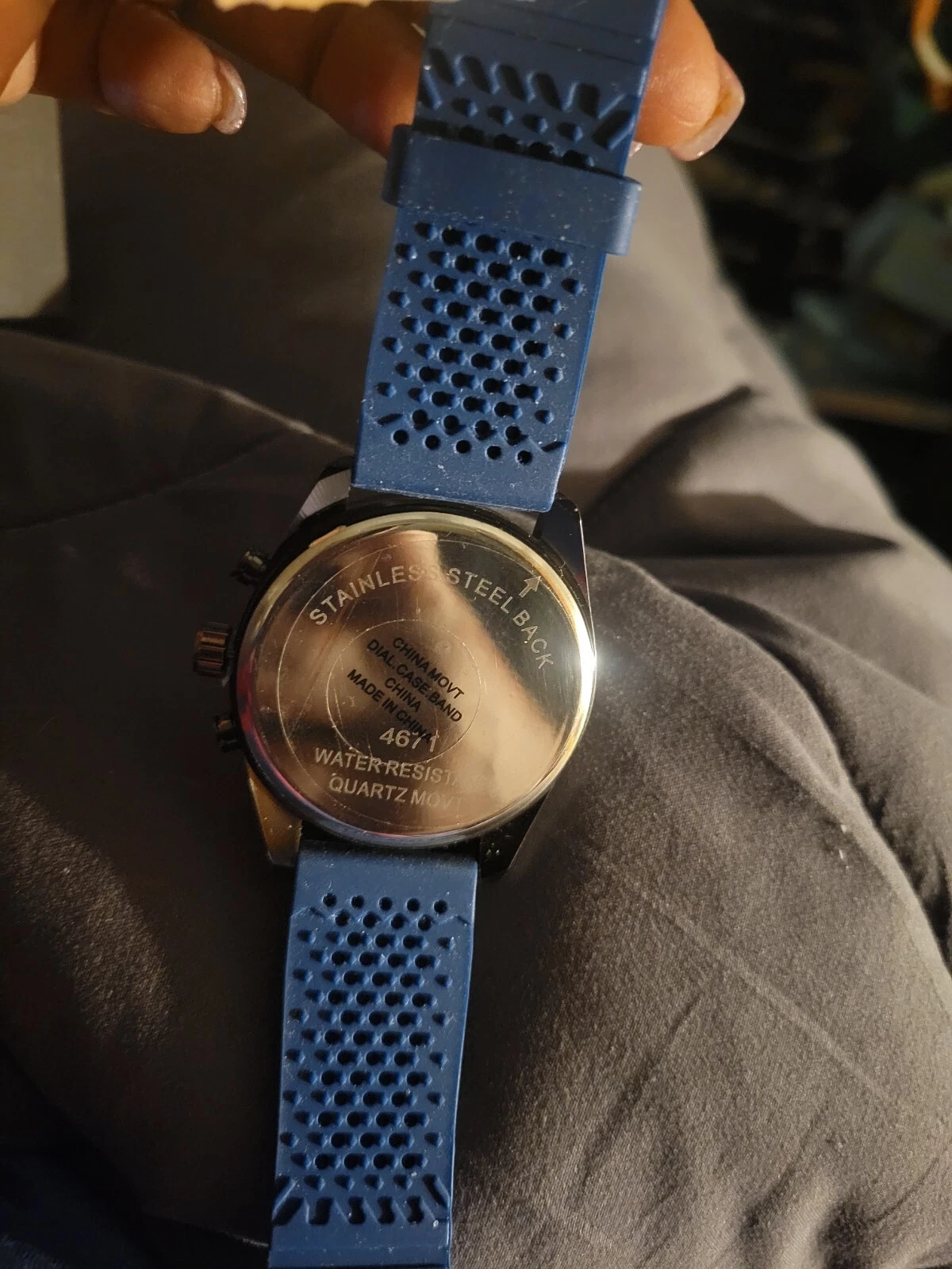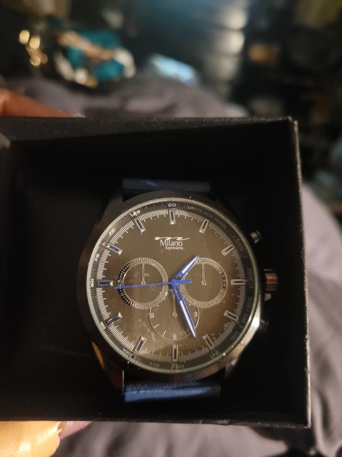 Men's Milano Military Style Watch Black Face & Blue Band 10" With Pillow And Box