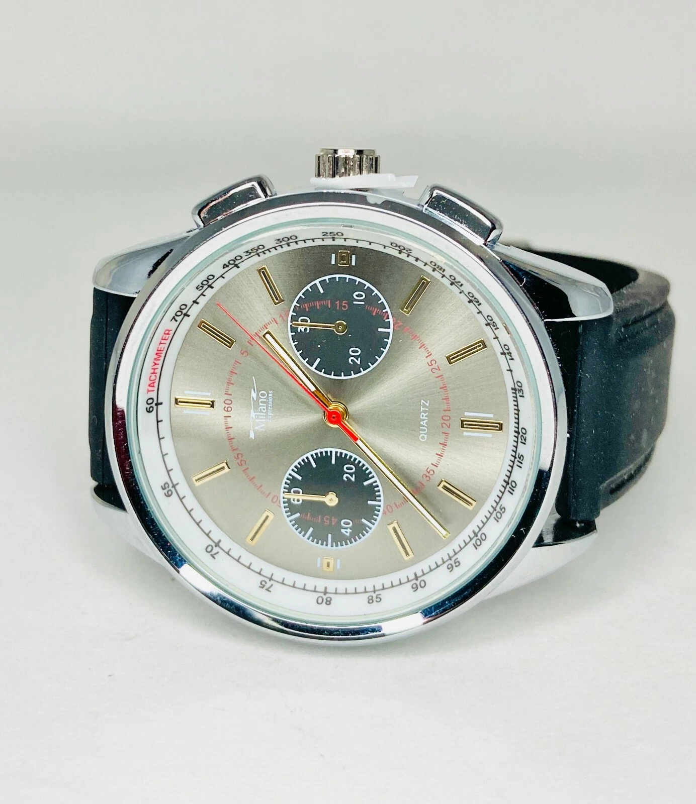 Milano Expressions New Men's Quartz Watch,Vnyl Band Tachymeter,Multi-Dials