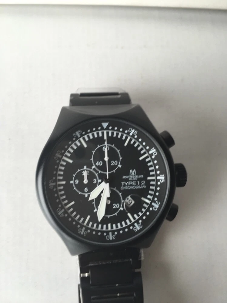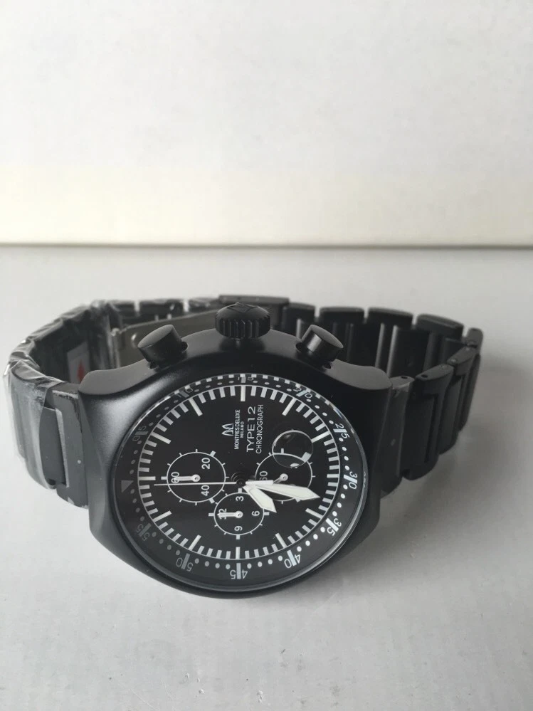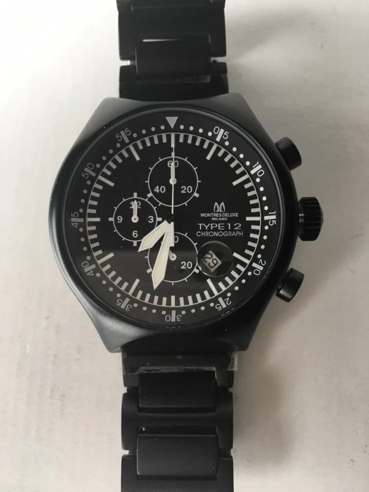 Montres De Luxe Milano Men's Type 12 Black All-Aluminum Chrono watch NEW