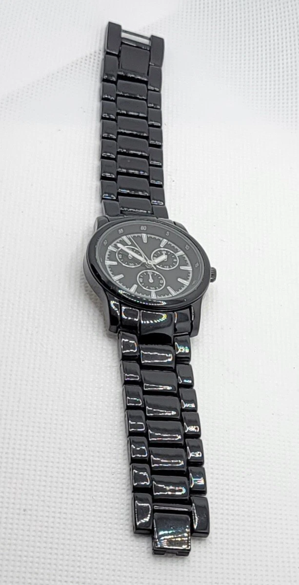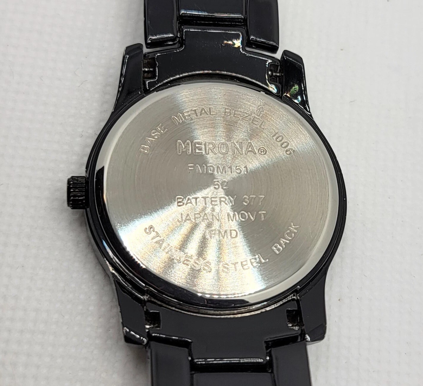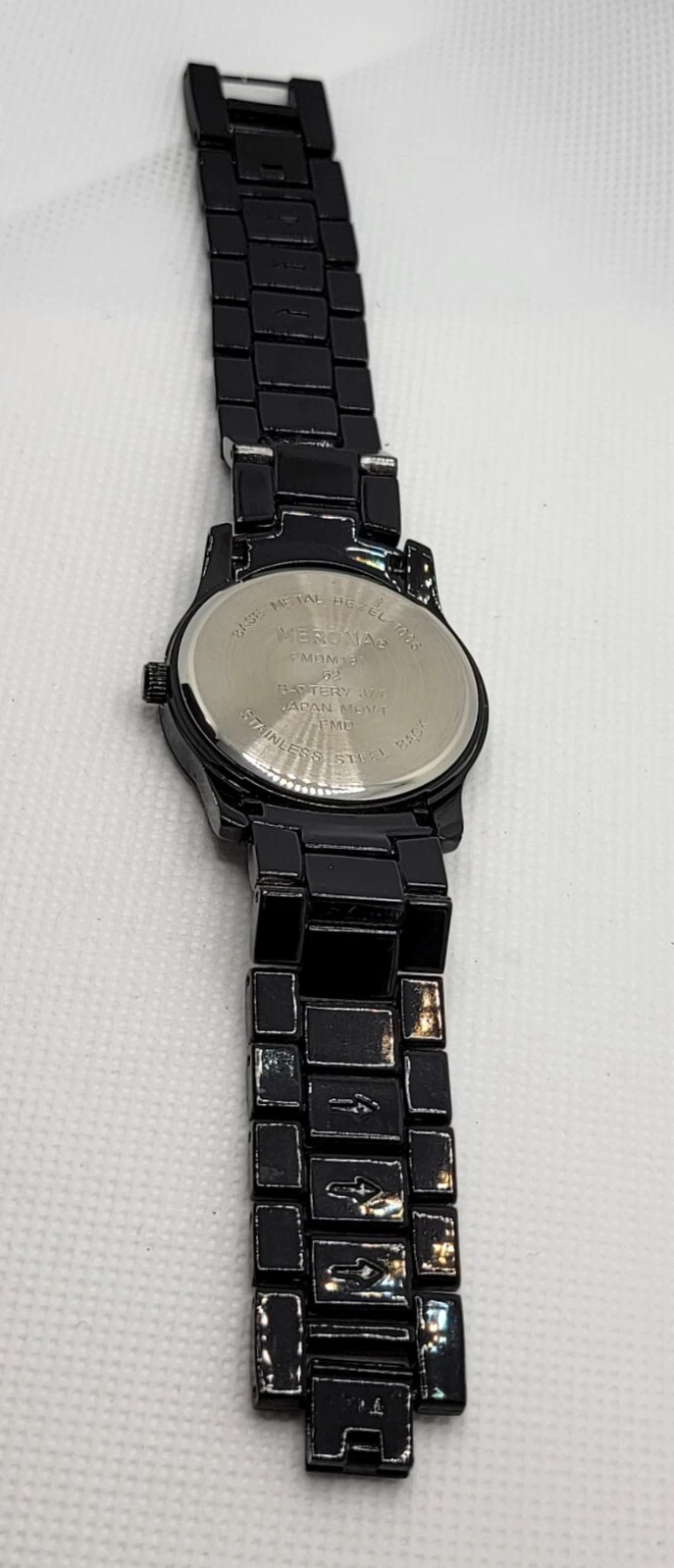 Ladies Merona Round Black Tone Link Bracelet Analog Watch F9