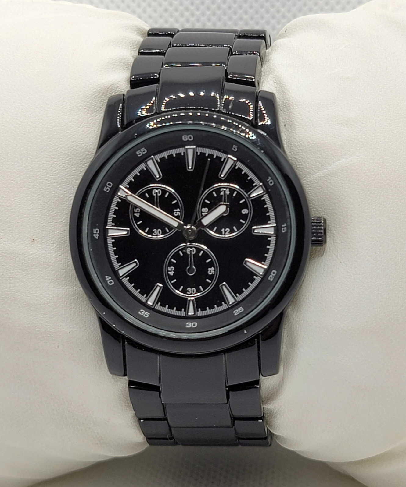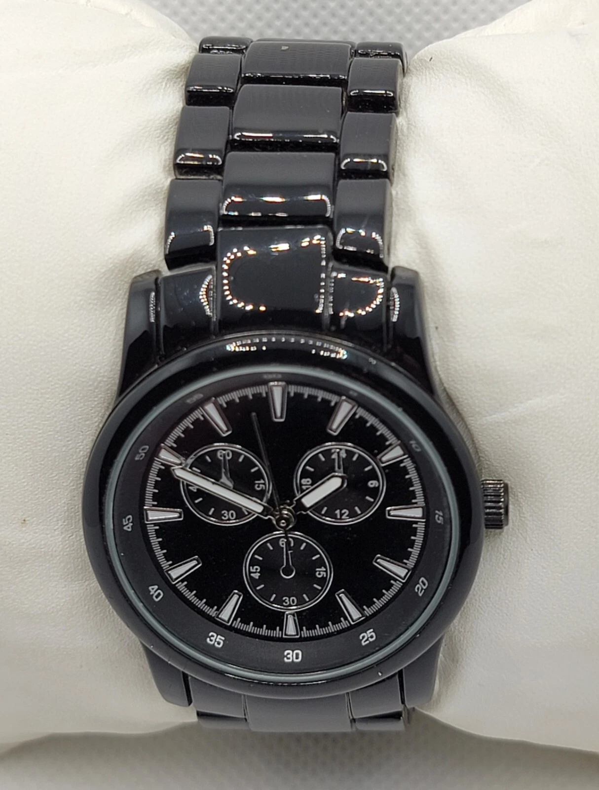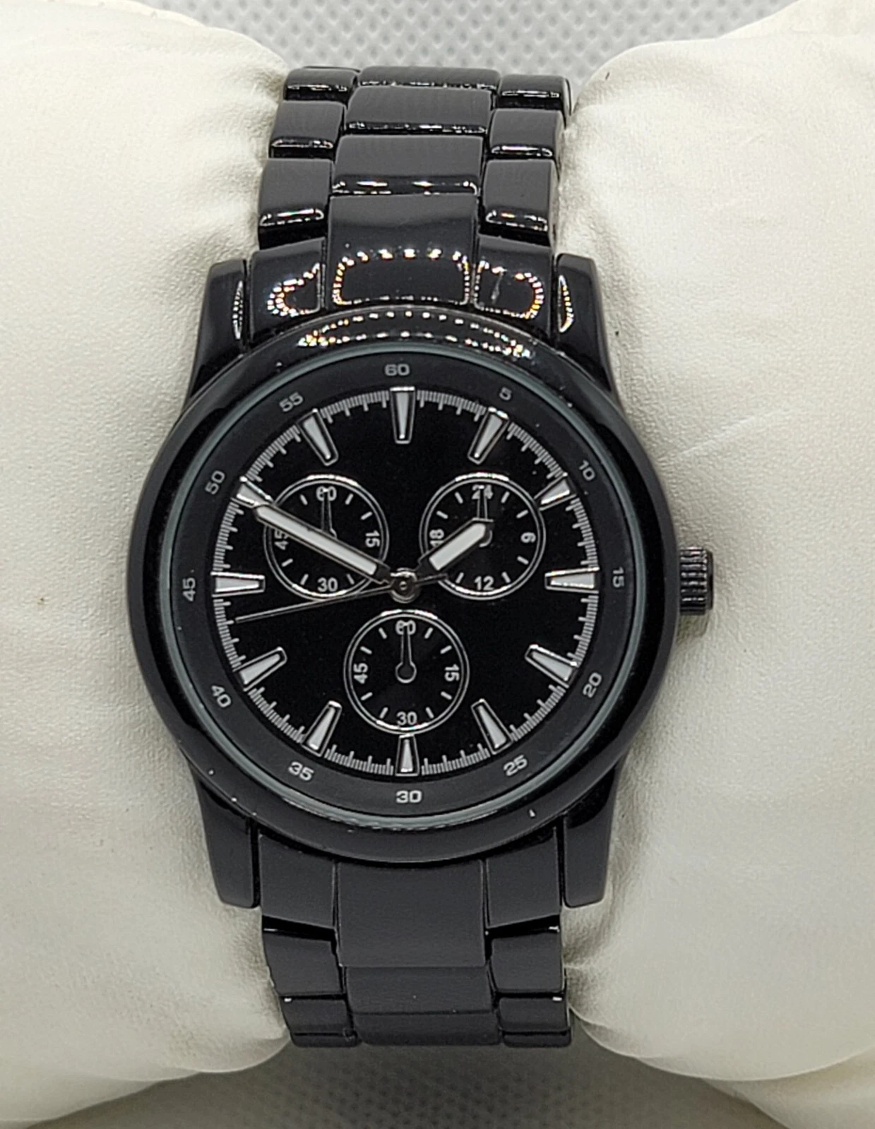 Ladies Merona Round Black Tone Link Bracelet Analog Watch F9