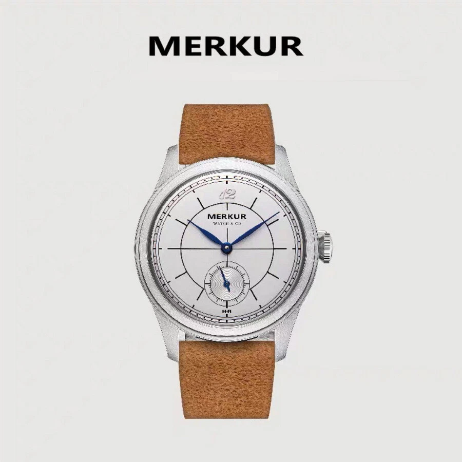 MERKUR Men Pilot Watch Luxury Manual Wind Mechanical Wristwatch White Dial Date
