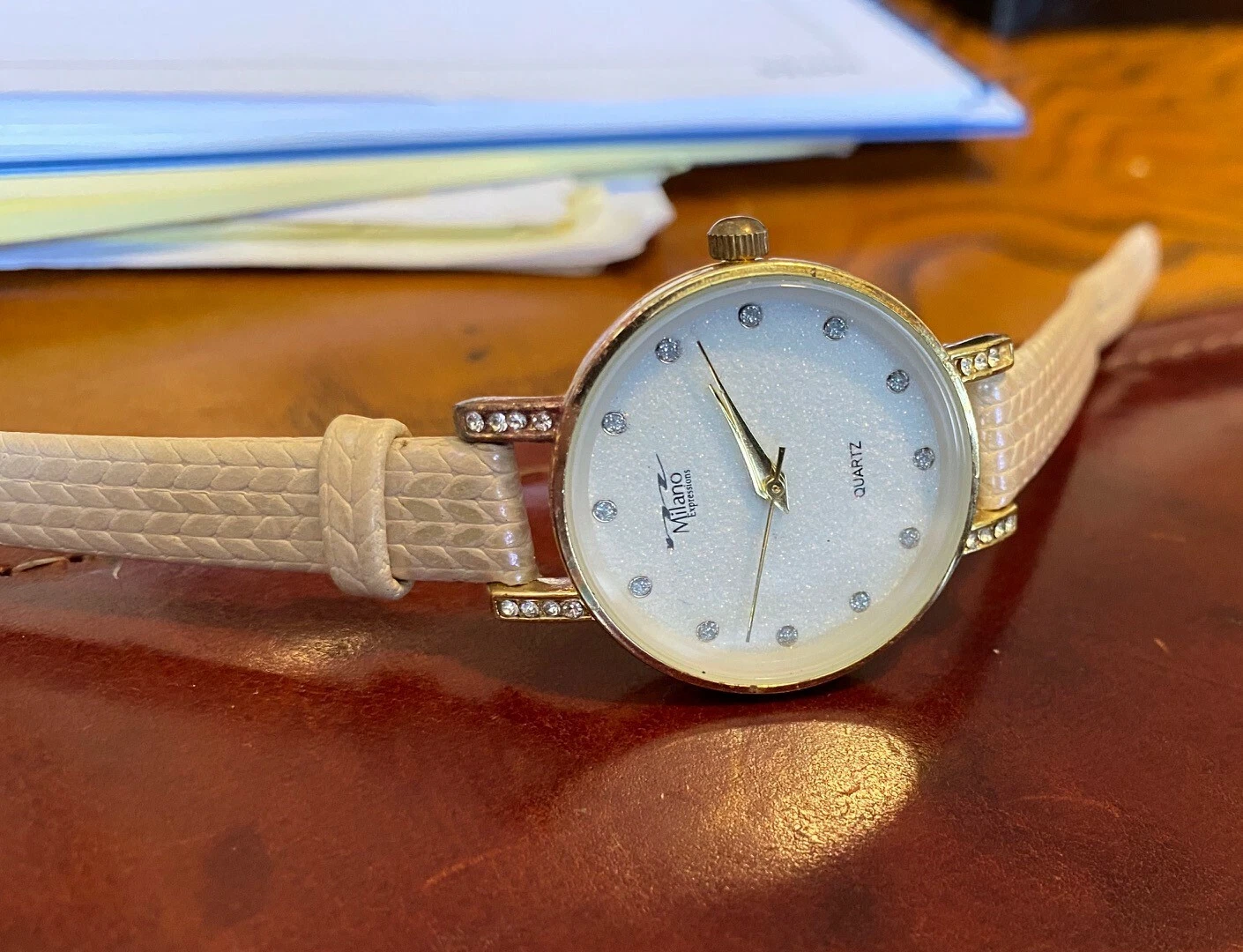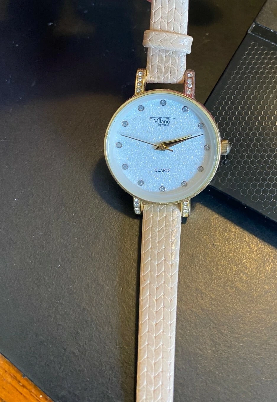 Women's Milano Expressions Watch, Gold Tone with Sparkle Face, Tan Band