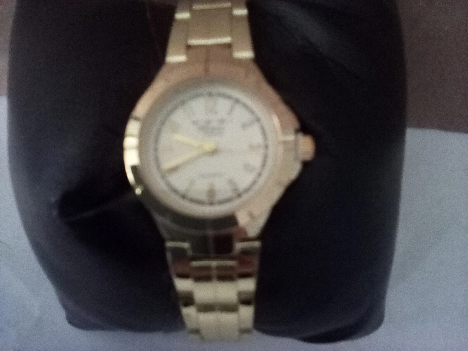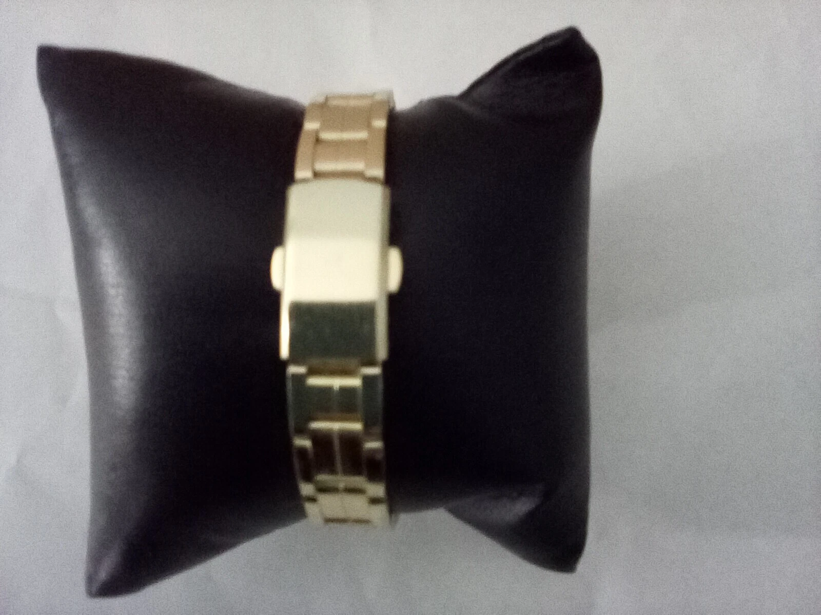 Milano gold watch with gold band. Measures 1.0" diameter.