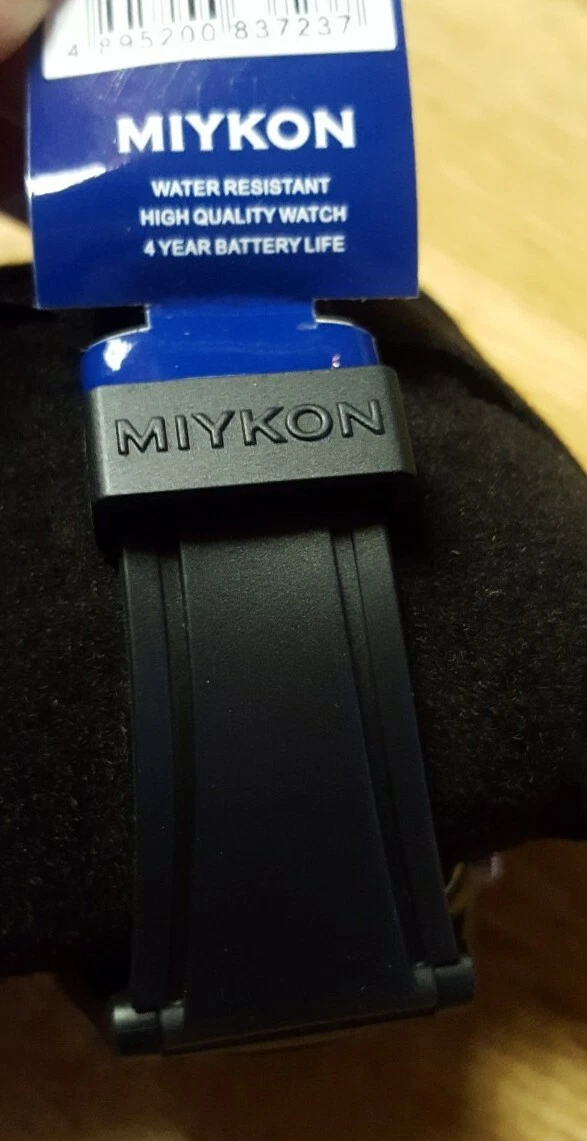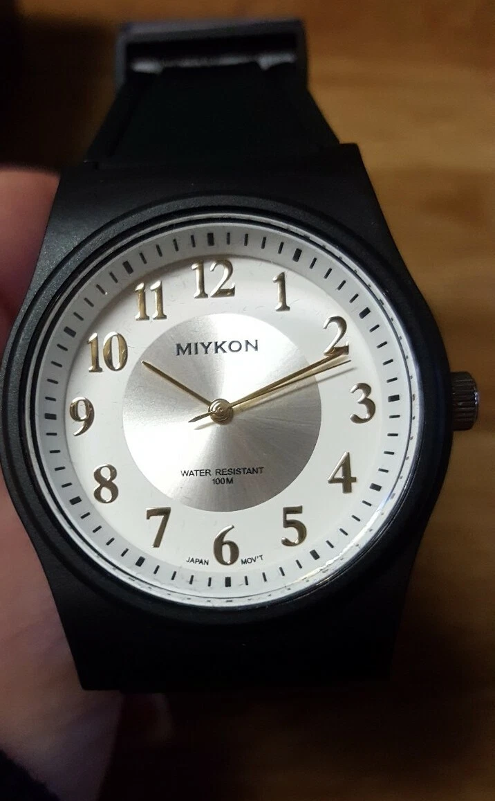 Miykon Men's Waterproof Watch Round Black Dial w/ Gold Numbers New NWT