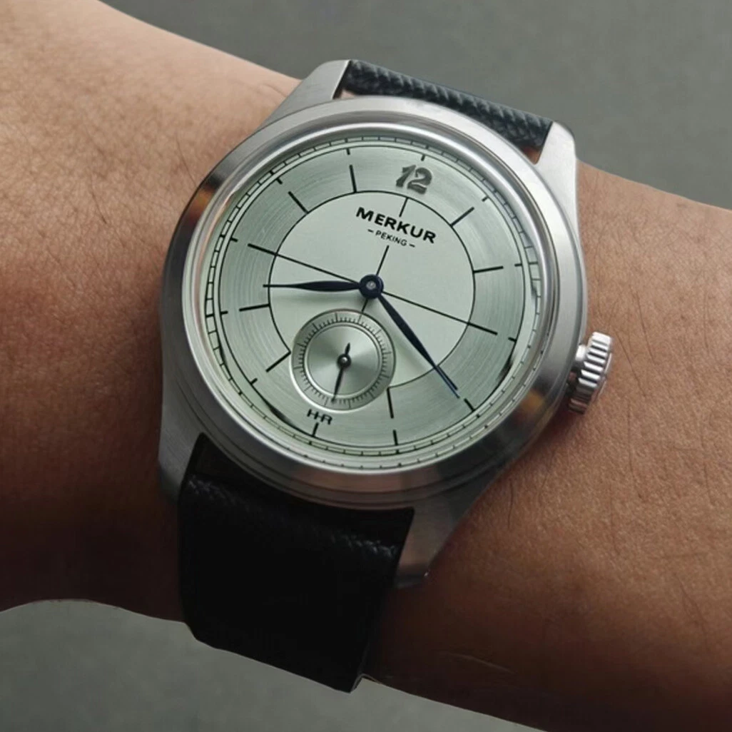 MERKUR Men Pilot Watch Luxury Manual Wind Mechanical Wristwatch White Dial Date