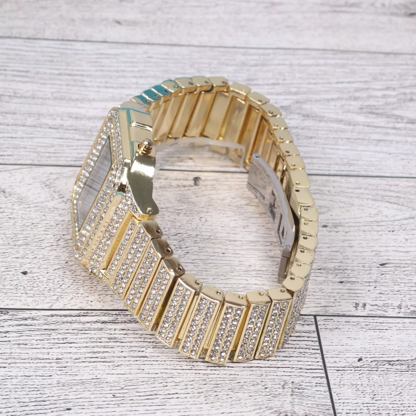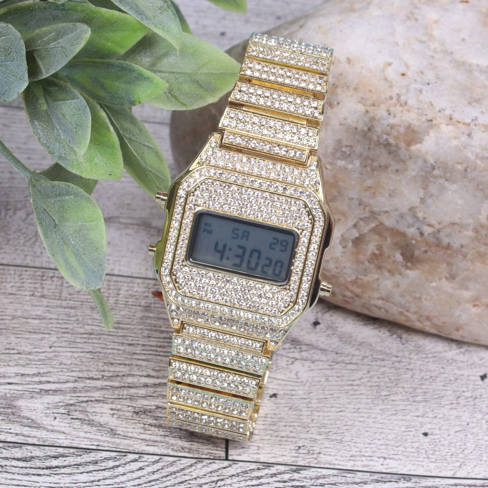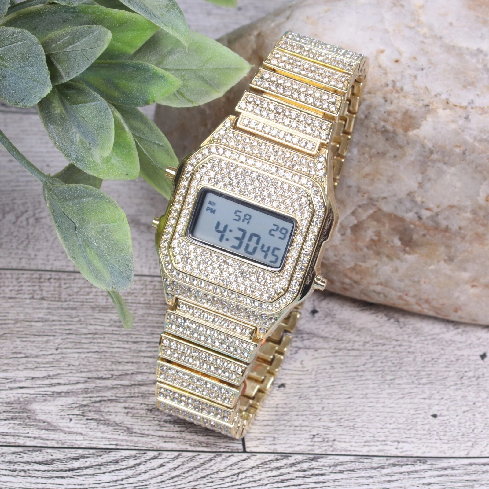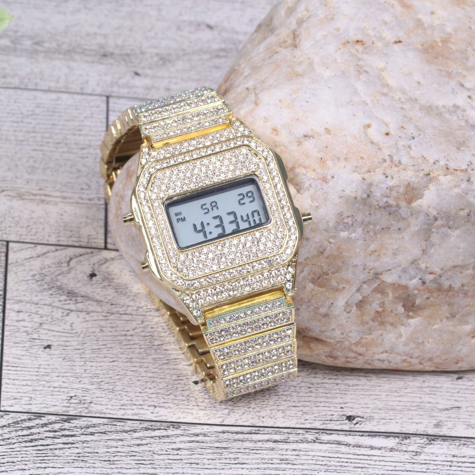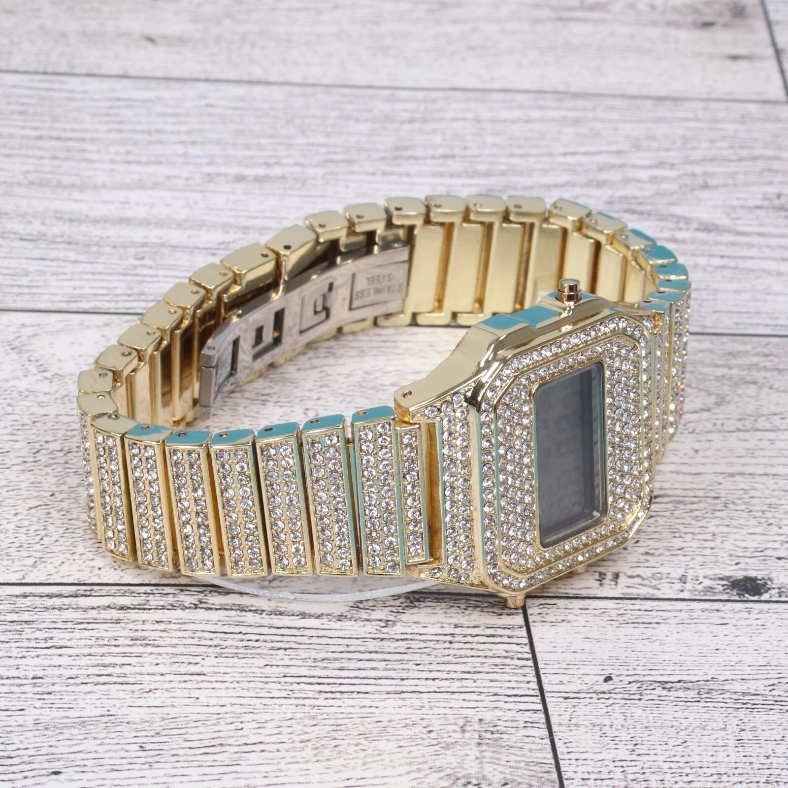 Montres Carlo Men's Hip Hop Luxury Stones Clubbing Wrist Digital Watch Gold