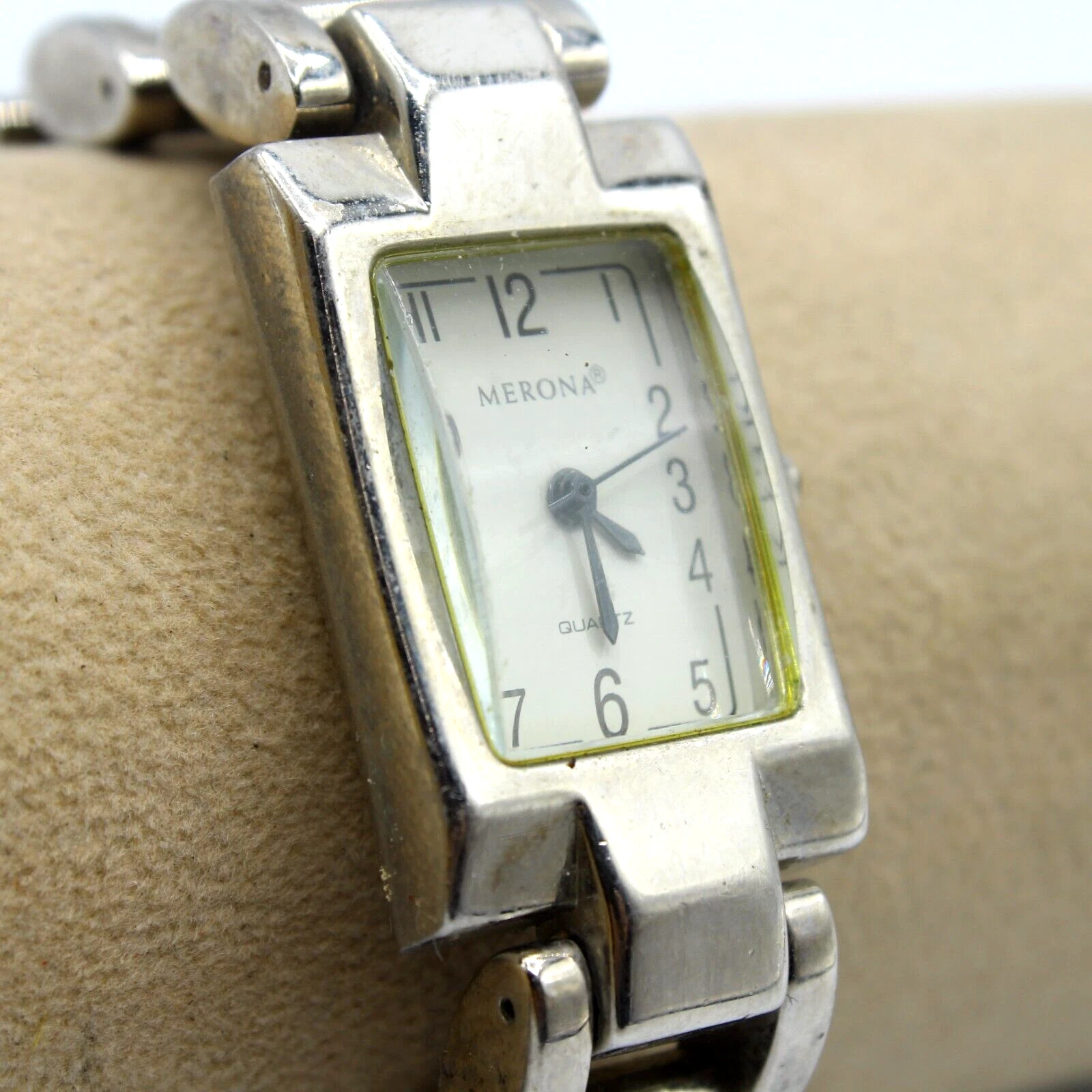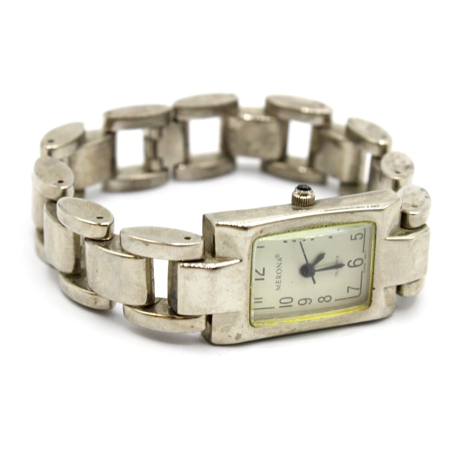 Vintage Merona Watch Women's Brushed Silver Tone Stainless Steel Rectangle Band