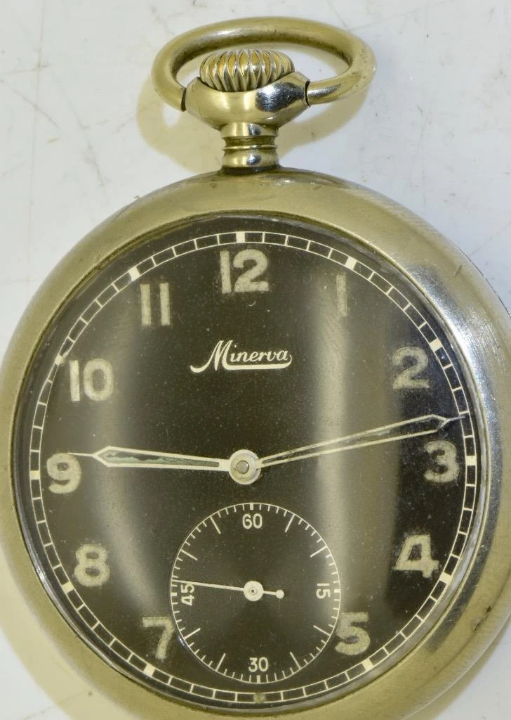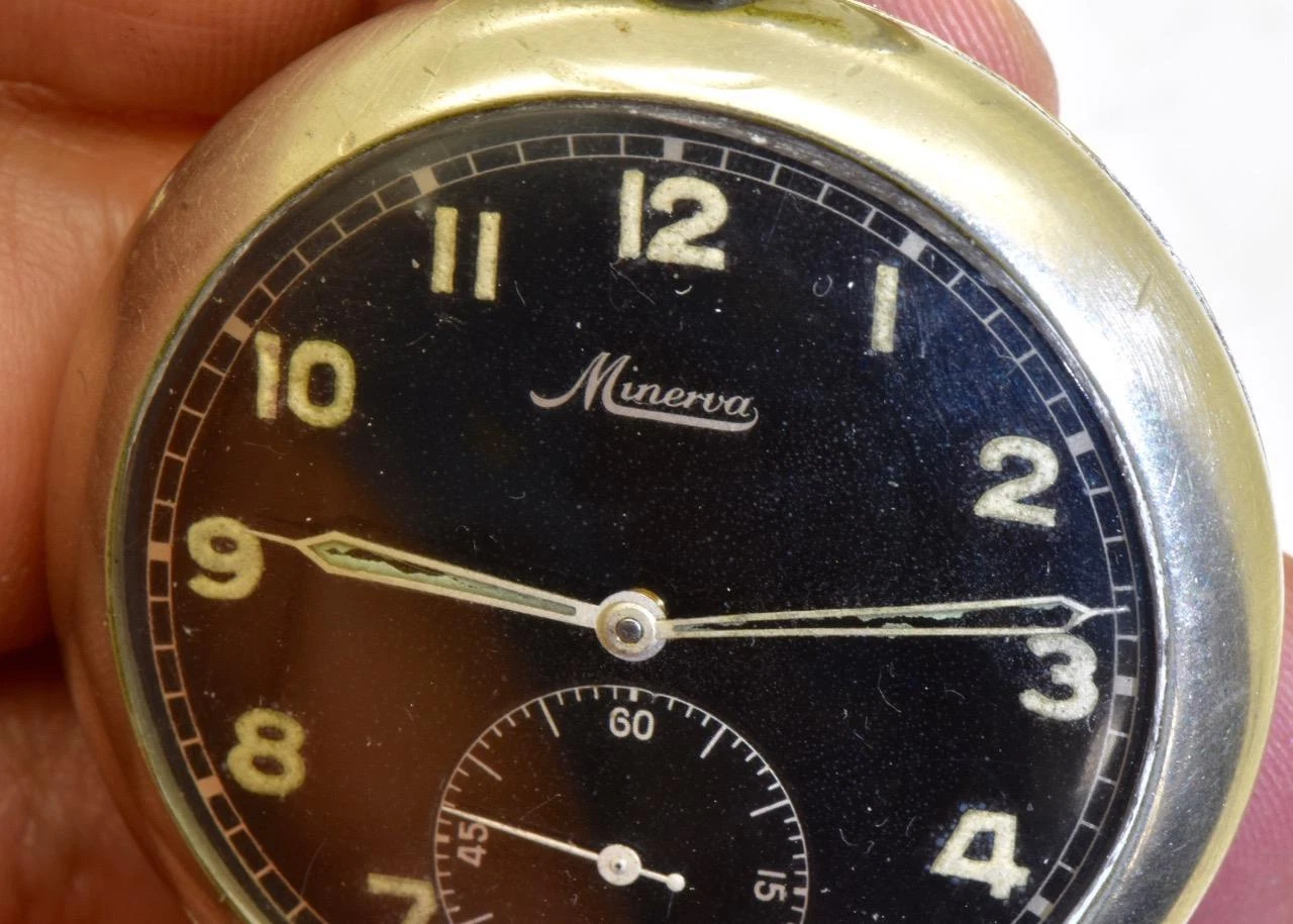 Antique Pocket Watch Minerva WWII Era Bulgarian Kingdom Pilot's Black Dial 1940