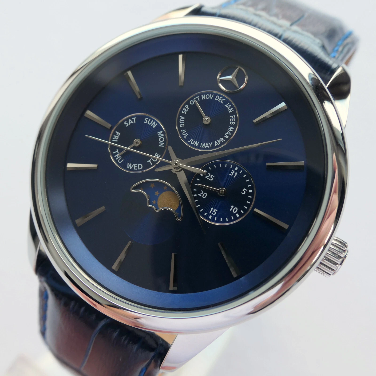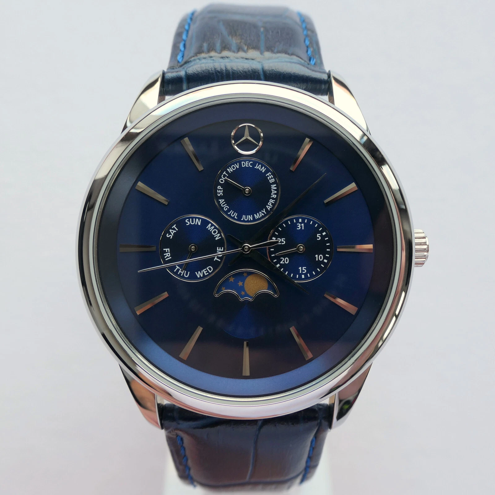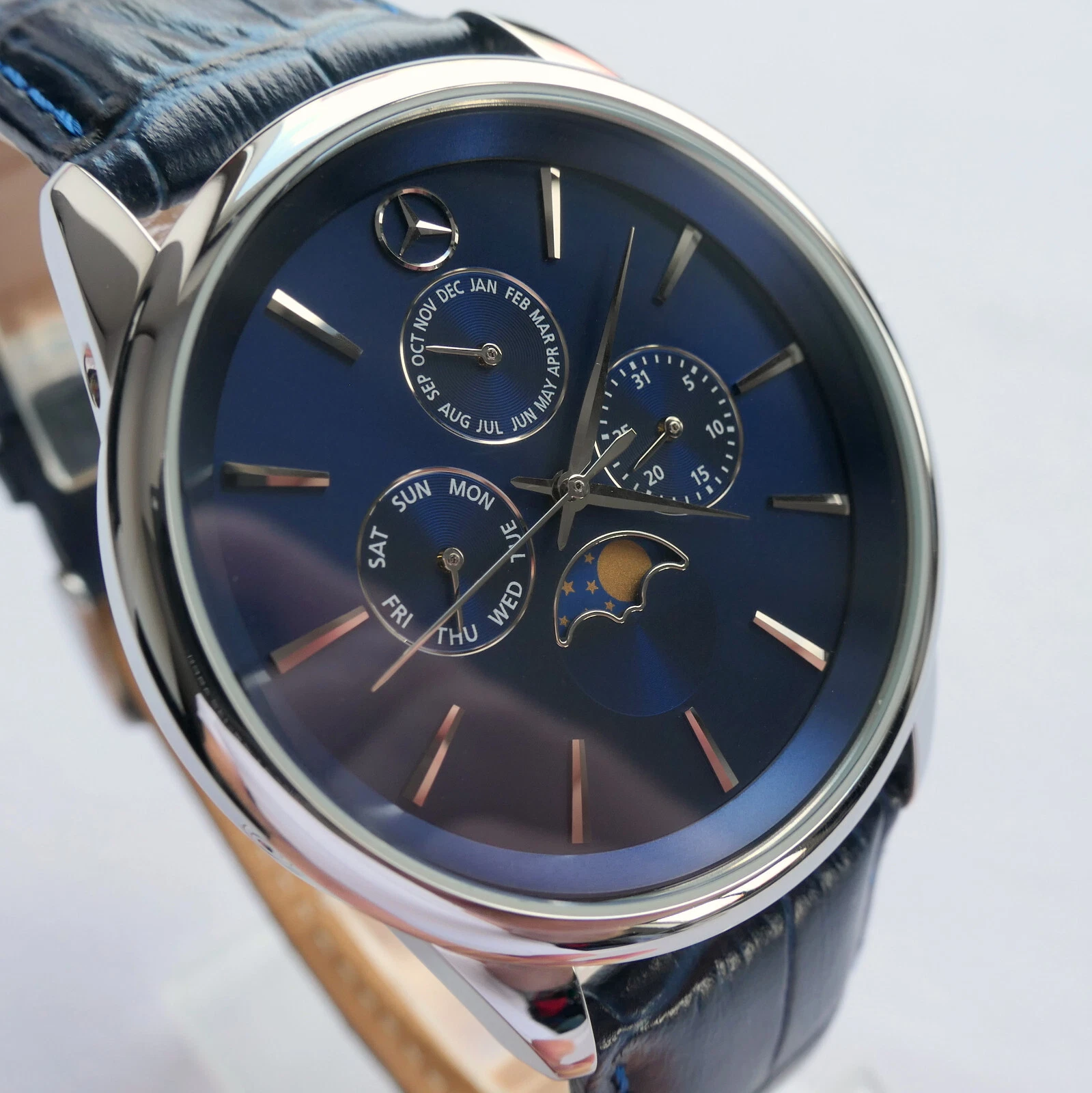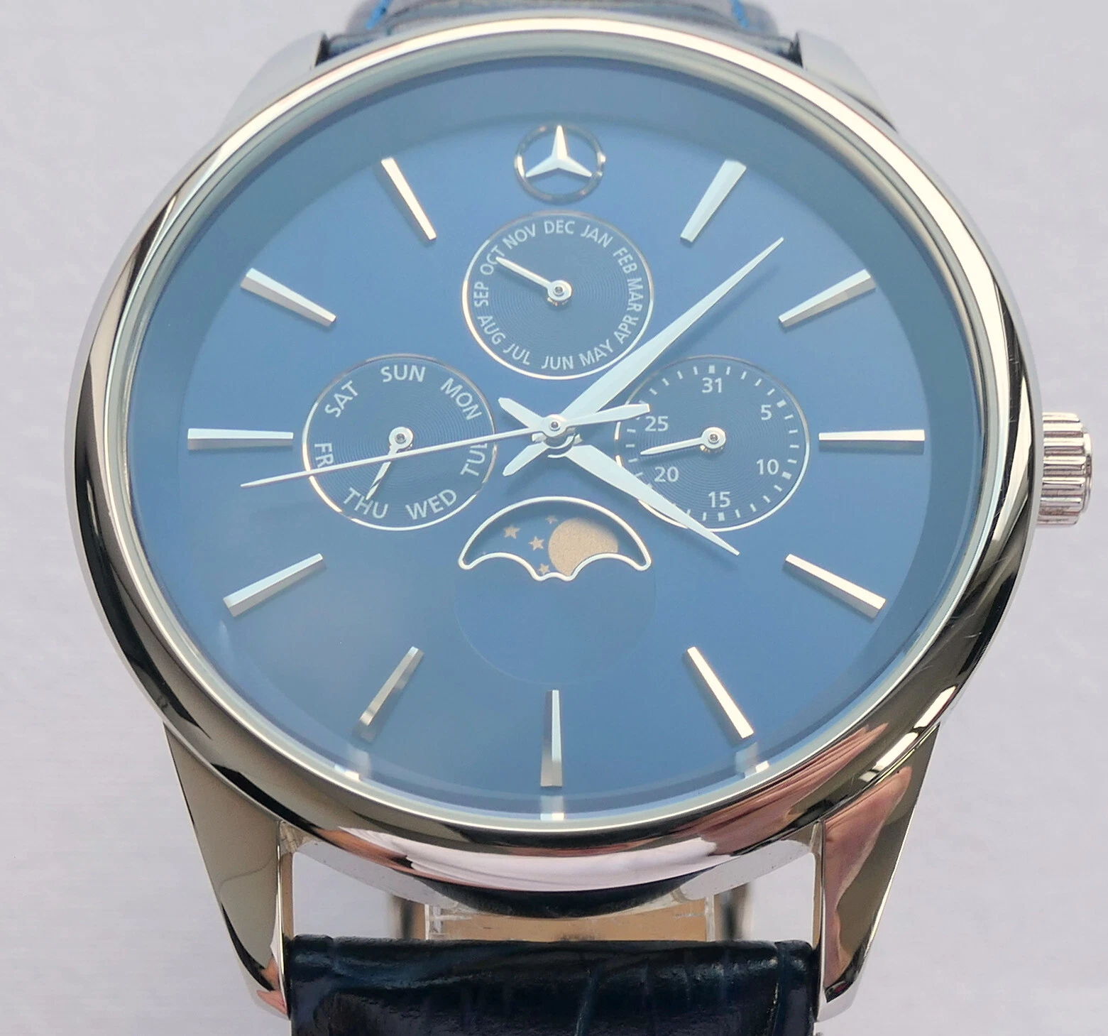 Mercedes Benz Classic Triple Calendar Moon Phase Car Accessory Swiss Movt Watch