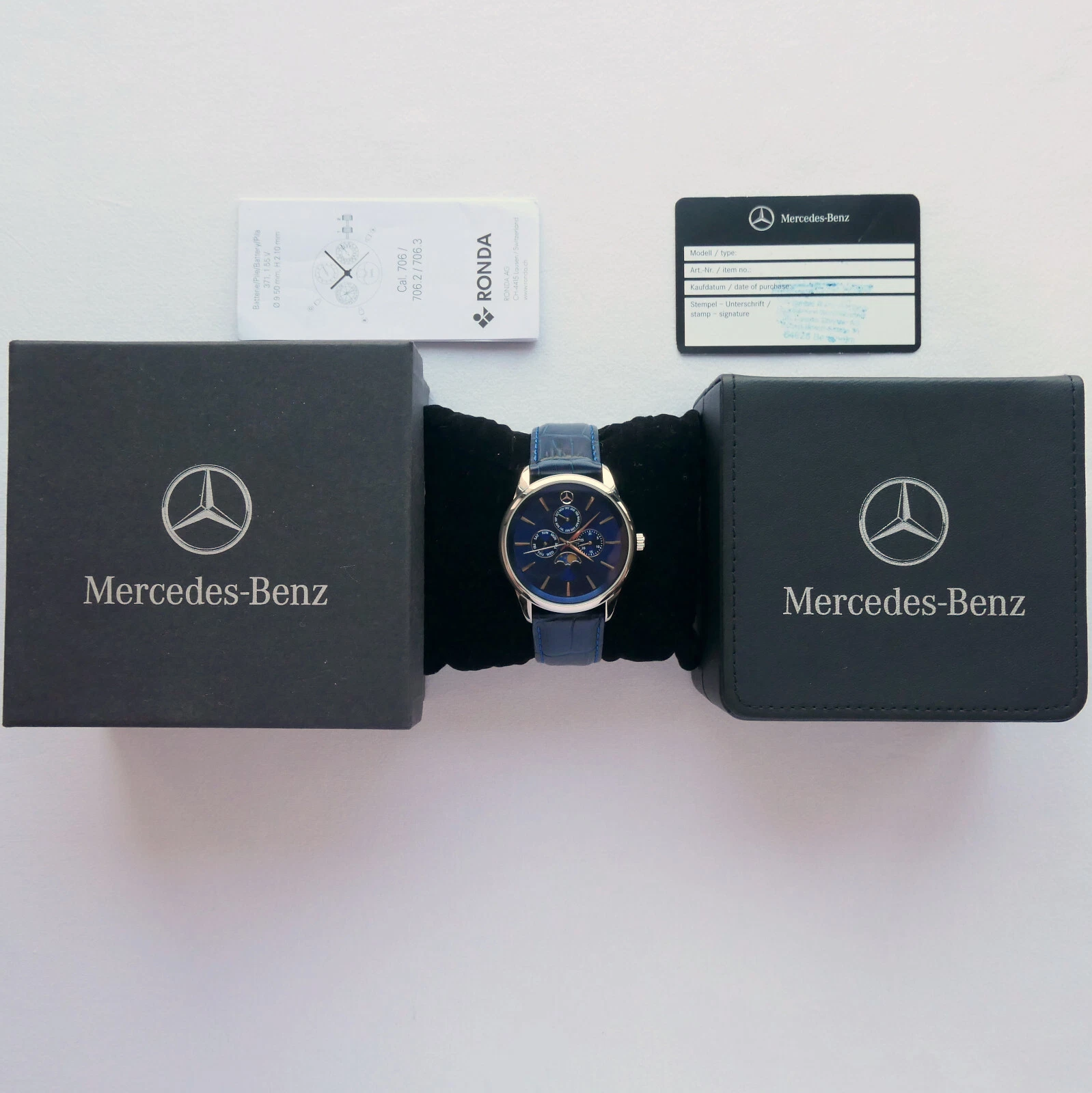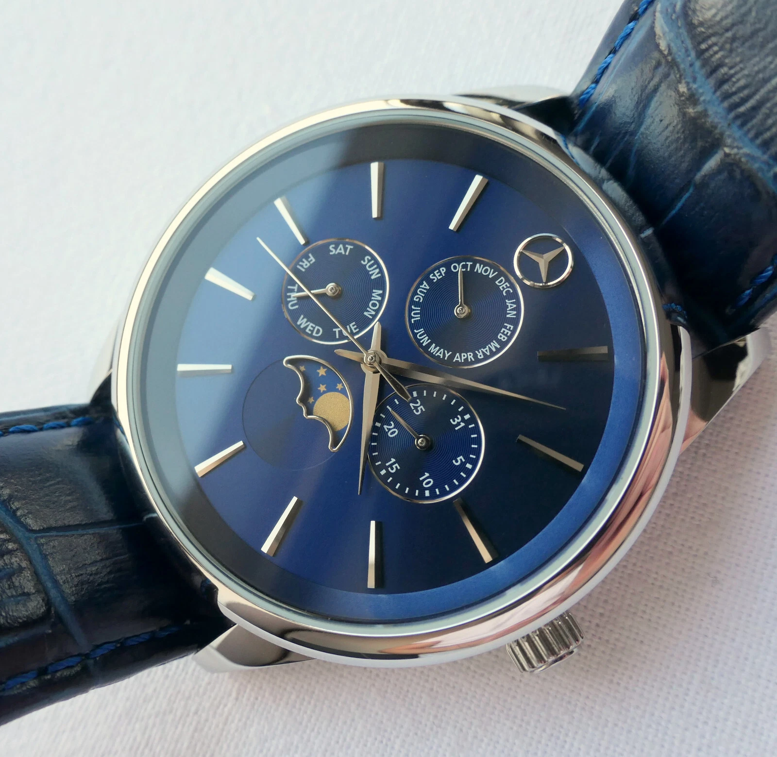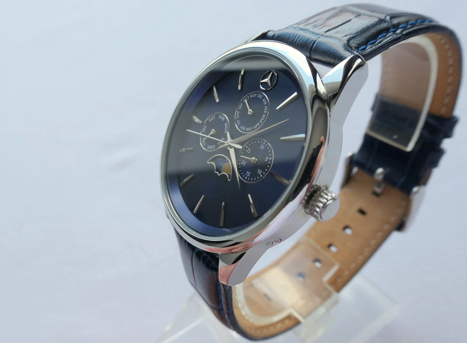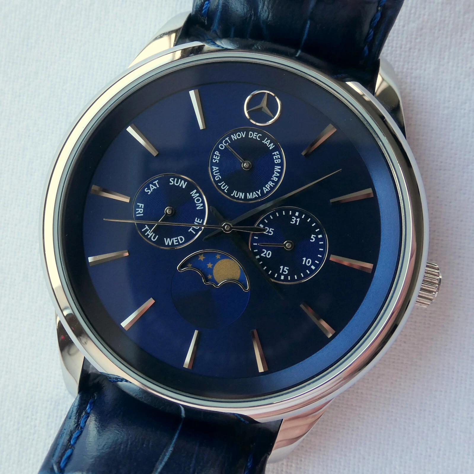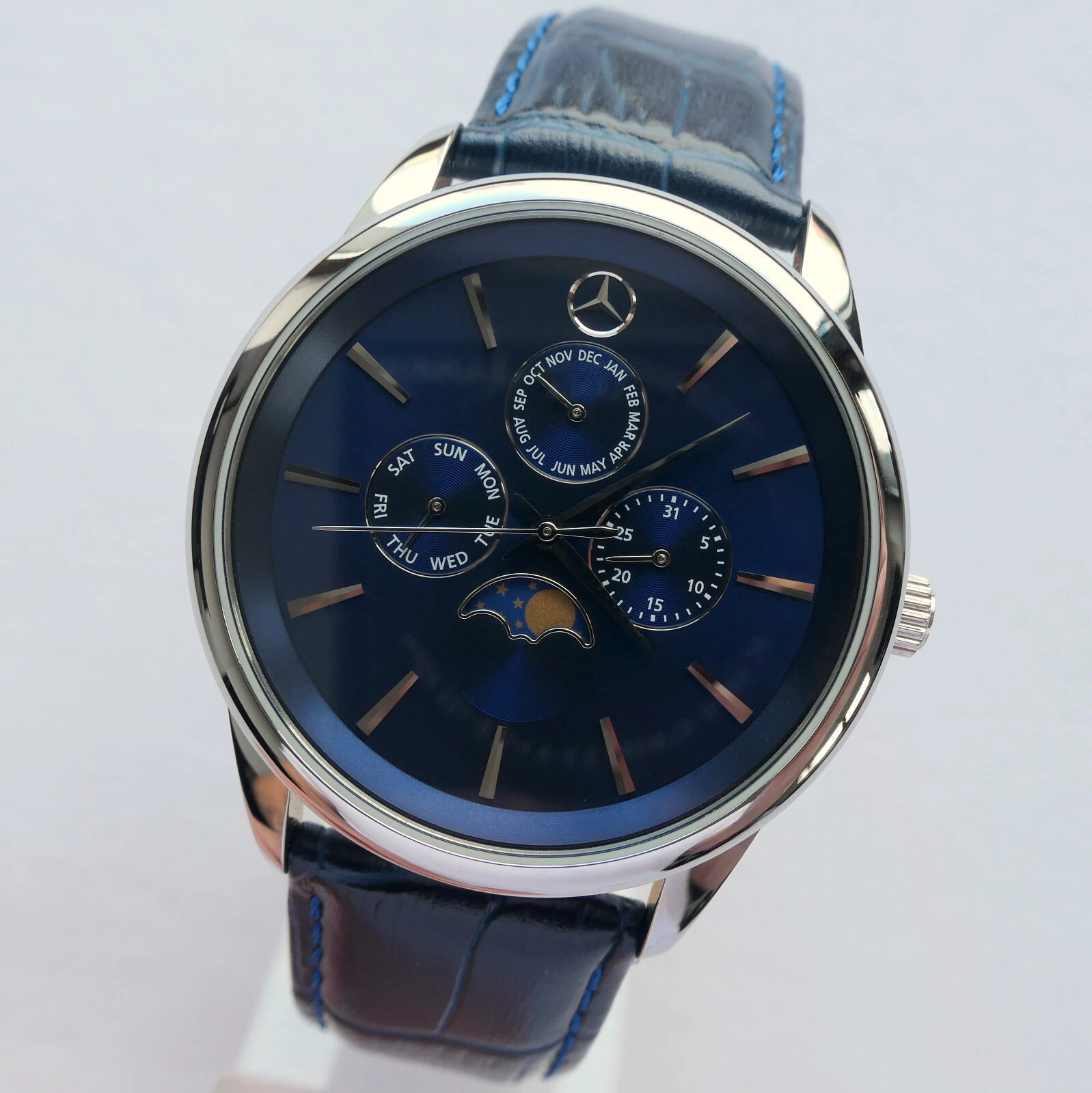 Mercedes Benz Classic Triple Calendar Moon Phase Car Accessory Swiss Movt Watch
