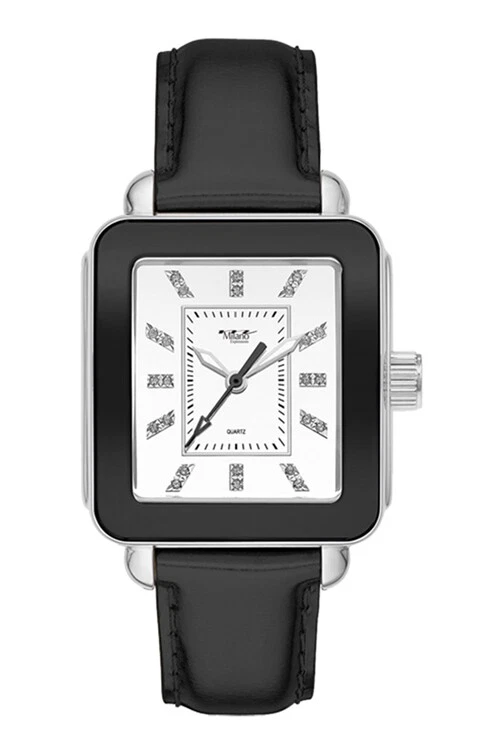 Milano Expressions White Vegan Leather and Black Vegan Leather Band Watch