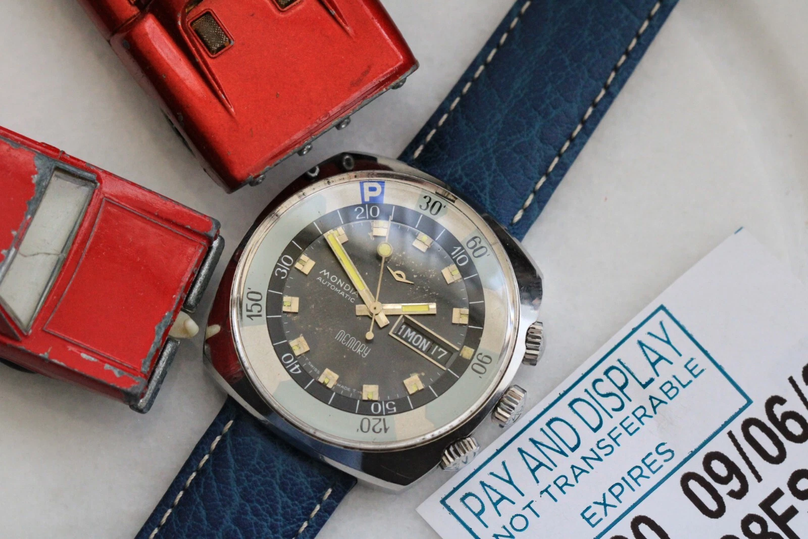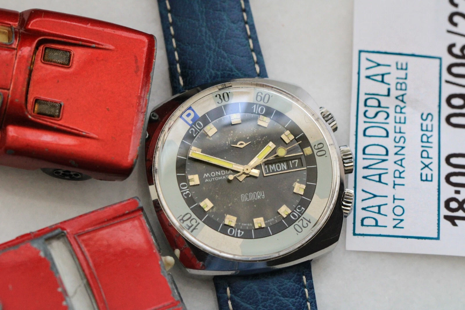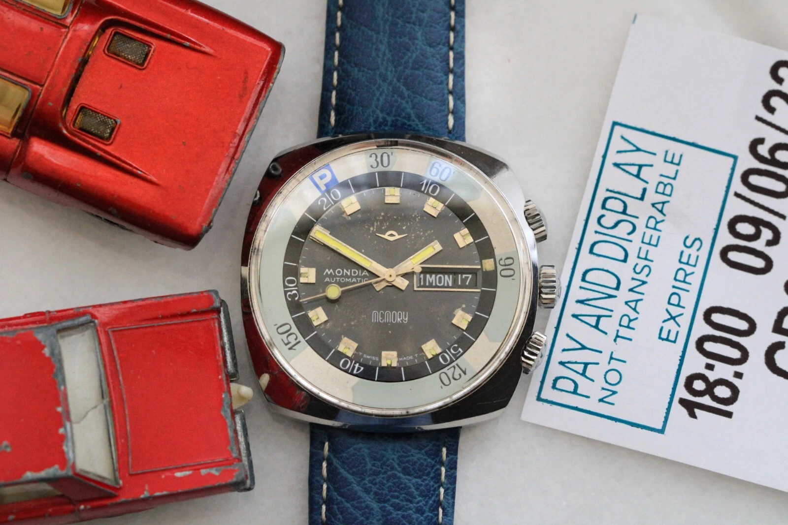 Unusual Mondia Memory Automatic Parking World Time Wristwatch c.1970's