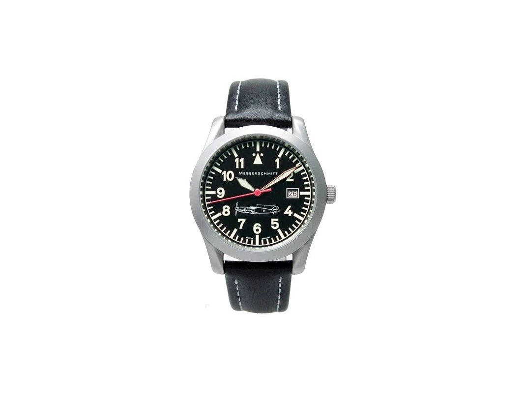Messerschmitt Me 109-40 Aristo Fliegeruhr Edelstahl Lederarmband Ronda Uhrwerk