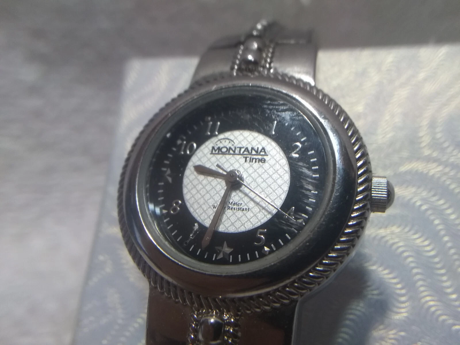 Montana Silversmiths Watch Silver Band Center Bullitt's Black White Dial New Bat