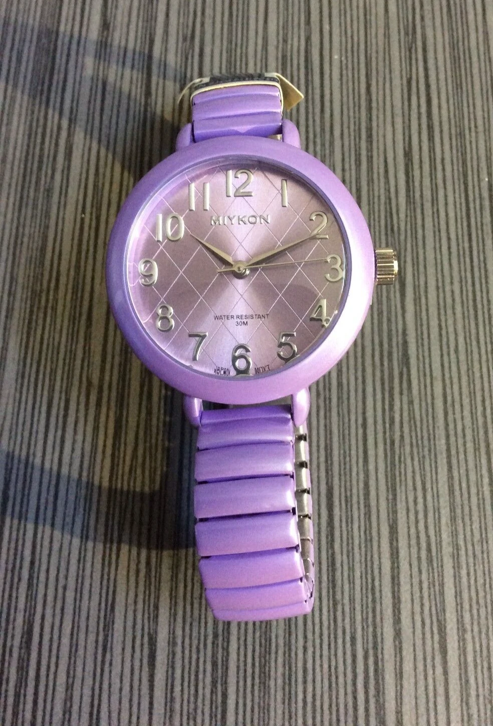 Miykon Women's Watch Round Purple Dial on a Purple Stretch Band New Waterproof!