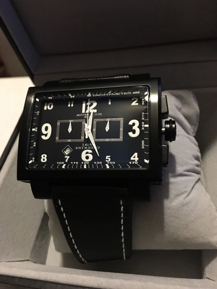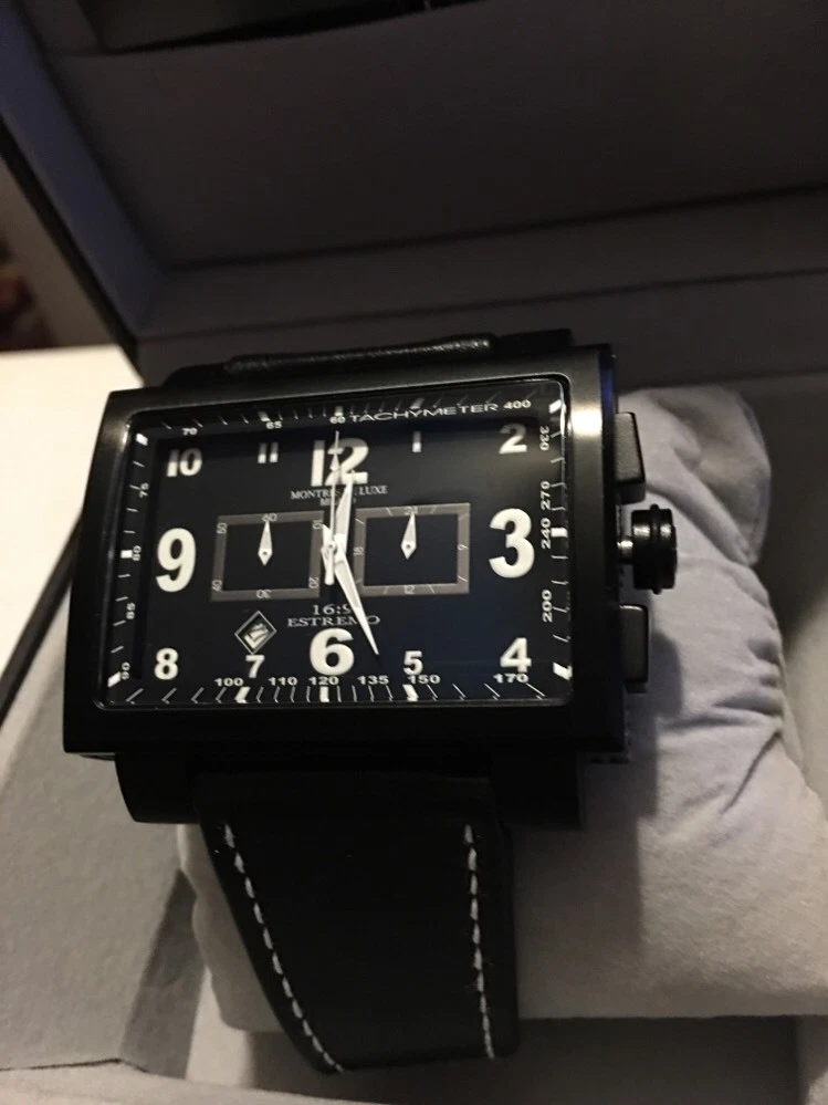 Montres De Luxe Milano Men's 16:9 Estremo tachymeter Black Chronograph watch NEW