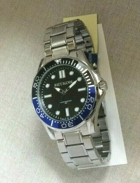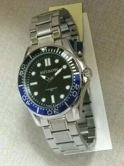 MIYKON Men's Watch Black & Blue Bezel Black Dial on a Silver Linked Band WP 30M!