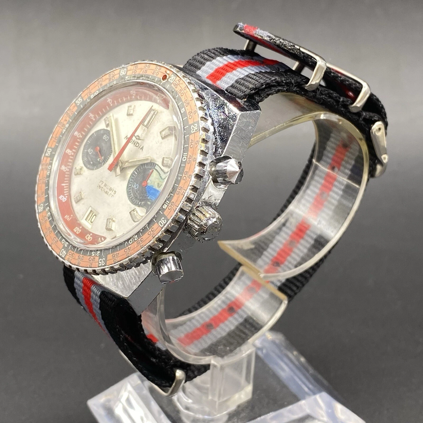 Vintage Mondia Chronograph Watch 17 Rubis Incabloc Valjoux 7734 Swiss