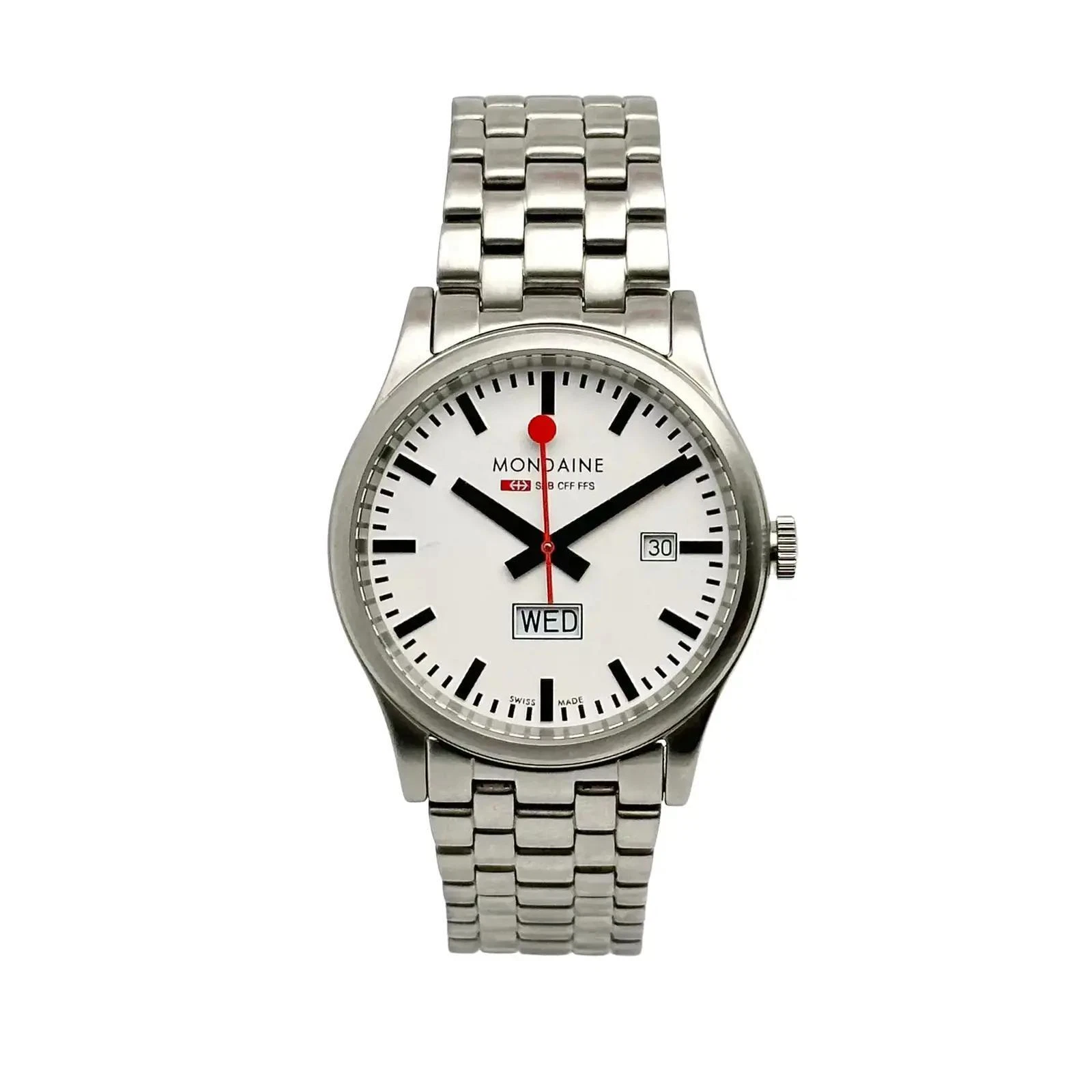 Mondaine Retro Day and Date 41mm Steel White Dial Mens Watch A667.30340.16SBM