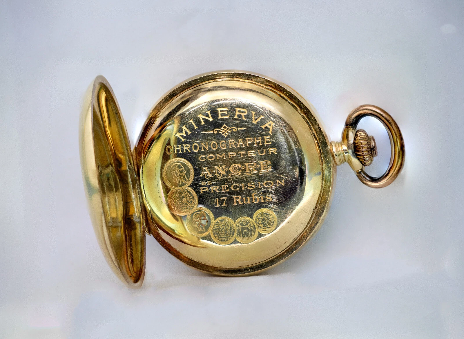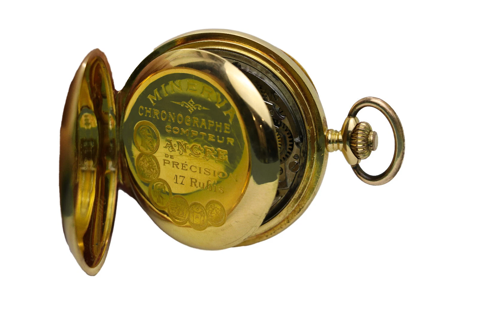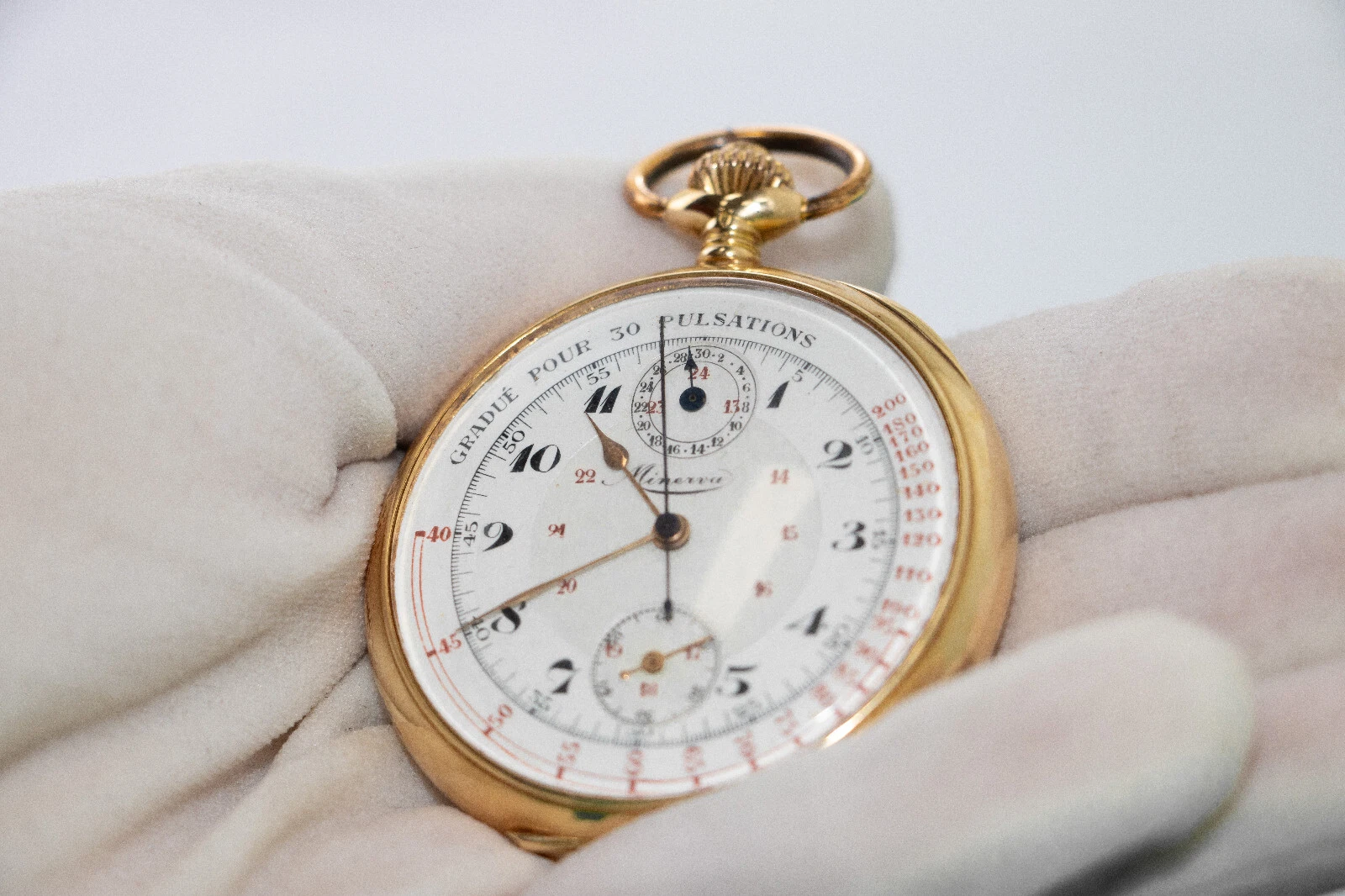 Minerva Chronograph Chronometer 18k Gold Case 17 Rubies Compteur Ancre Precision