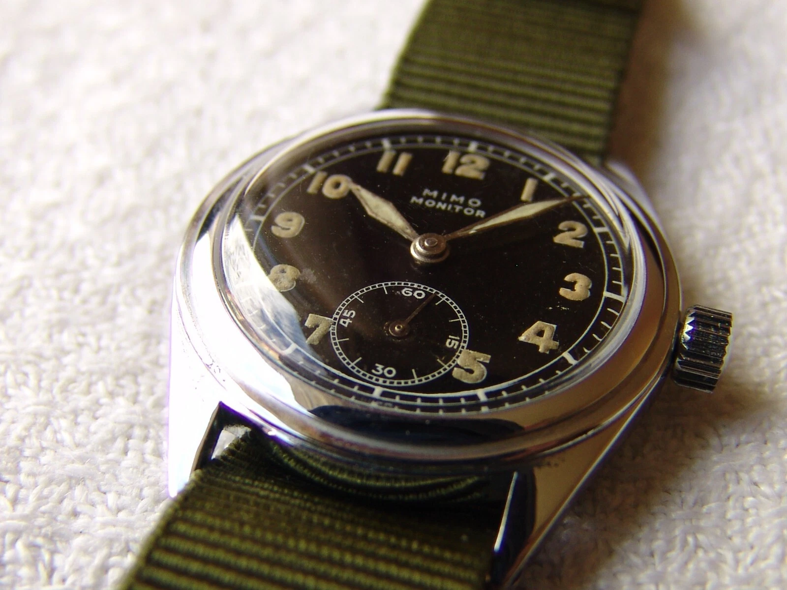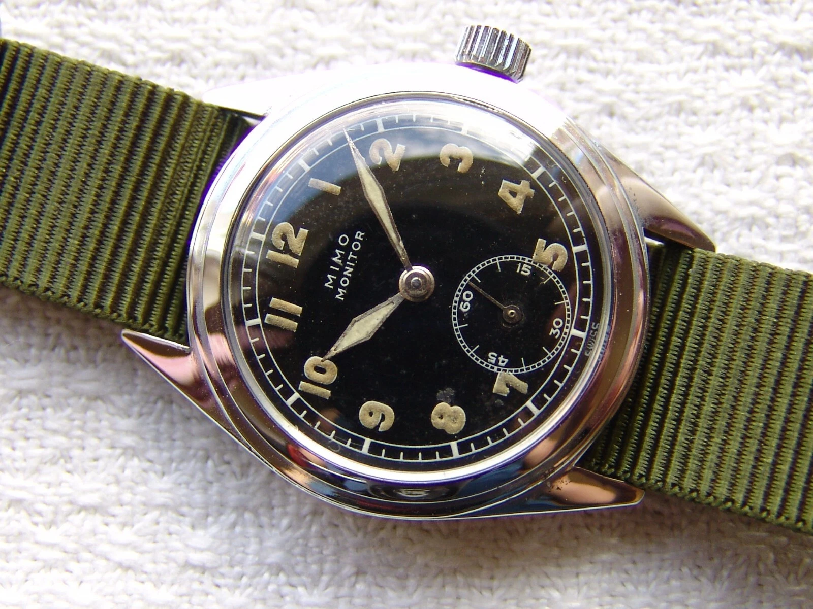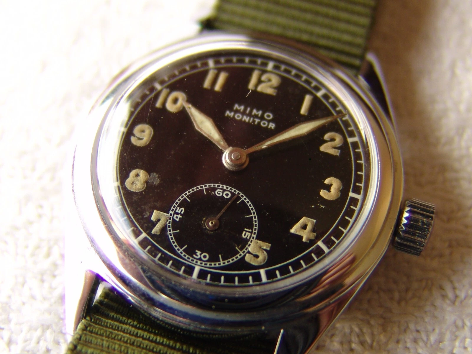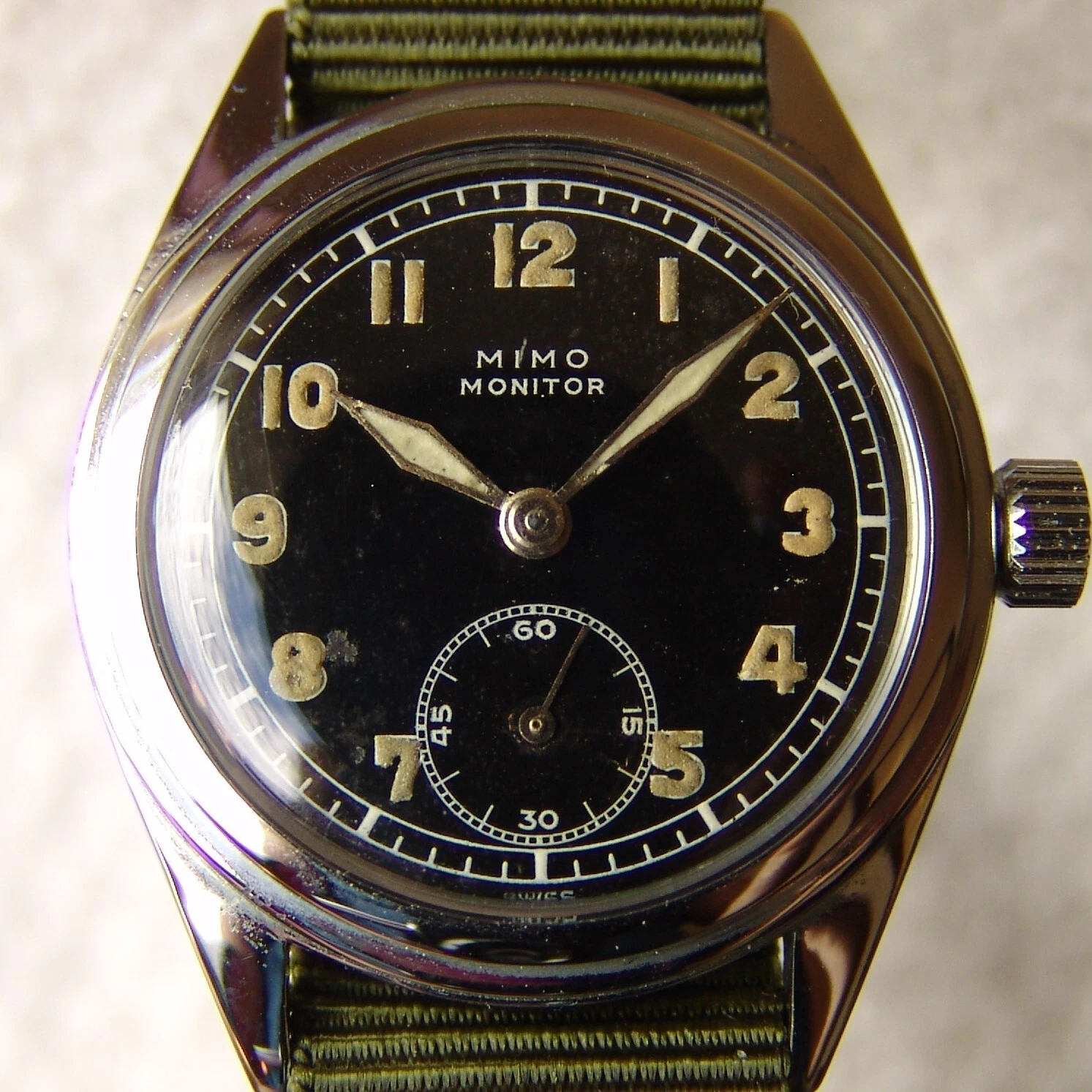 WWII ERA mens MIMO MONITOR Otto Graef MILITARY VINTAGE WRISTWATCH good condition