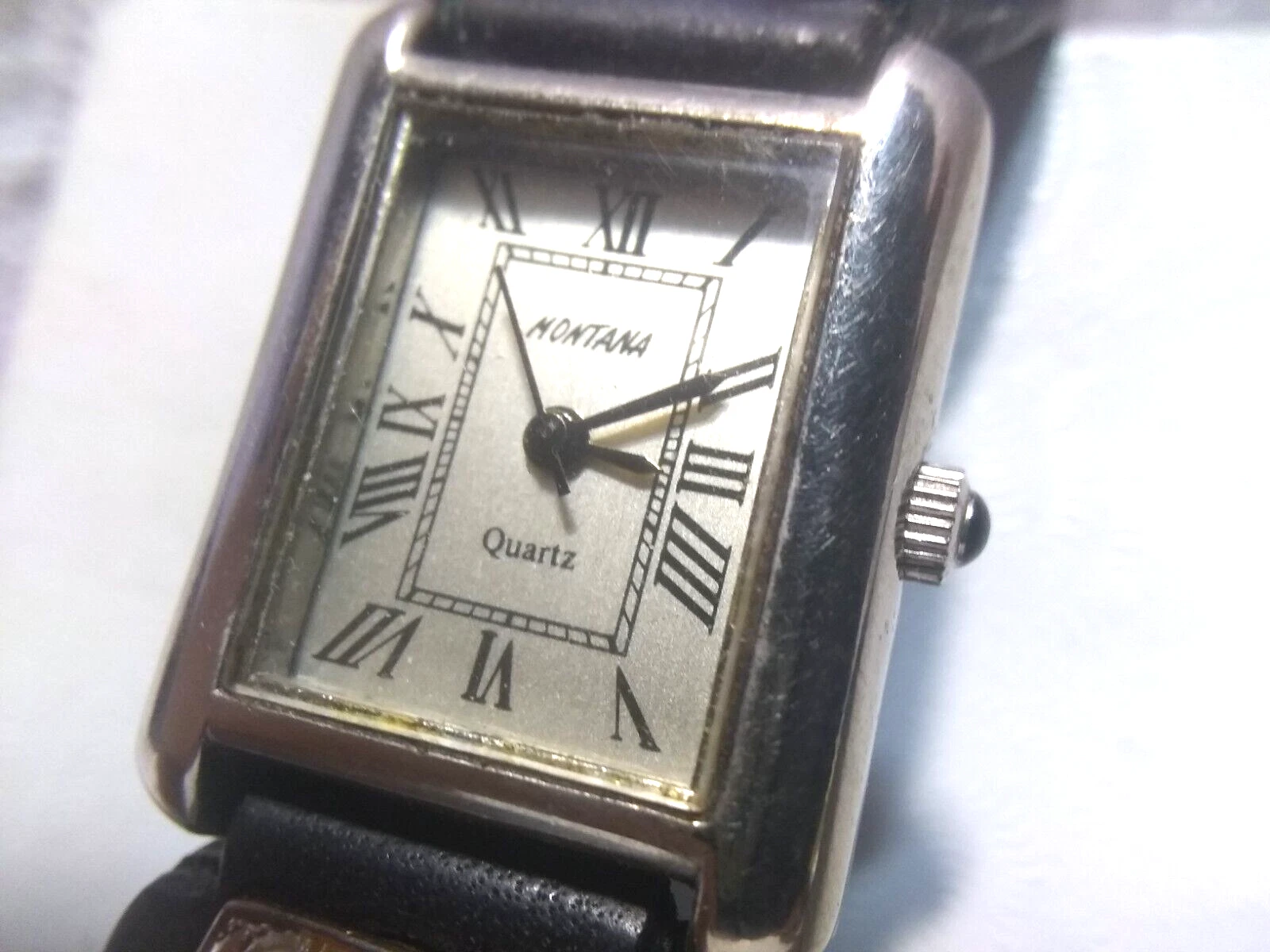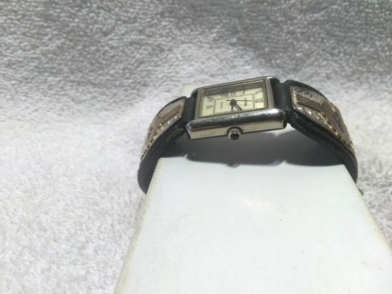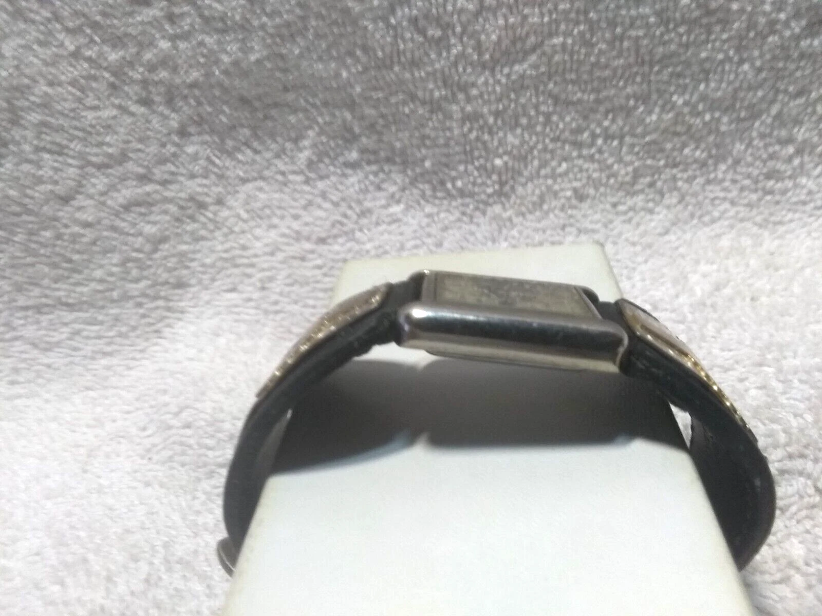 Montana Silversmiths Watch Aztec Silver Gold Black Leather New Bat Great Shape 3