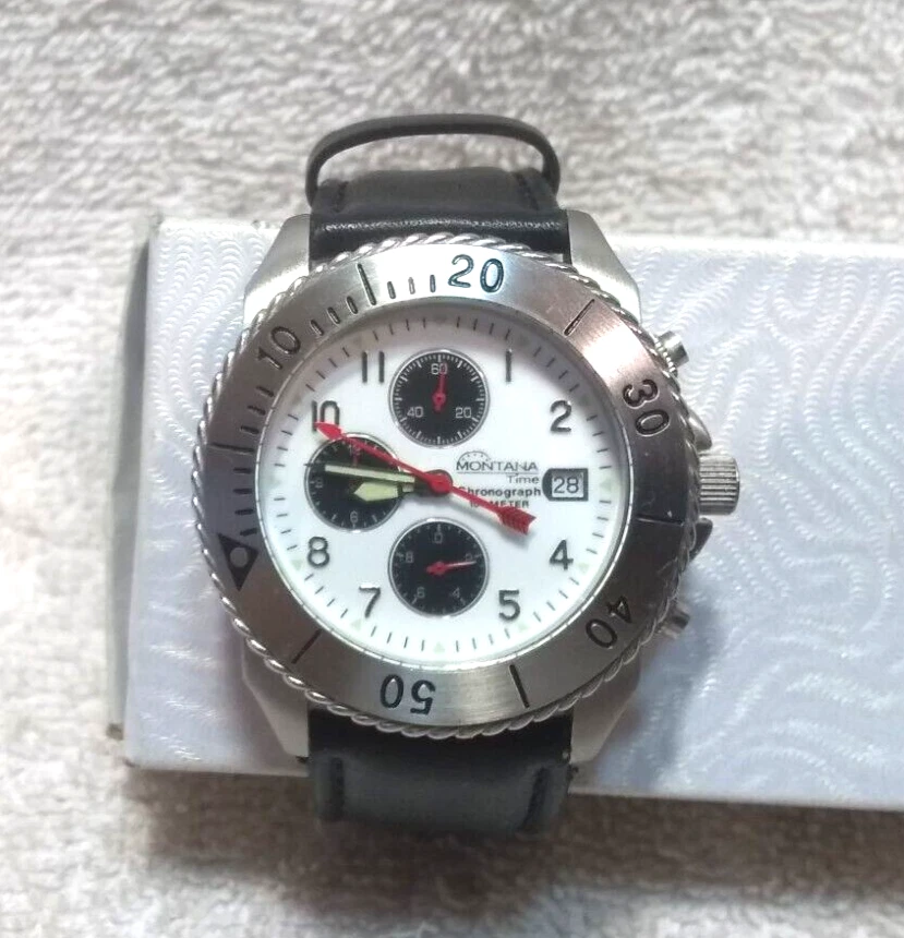 Montana Silversmiths Watch Men Chronograph MT740 Rot Bez New Bat Works Read