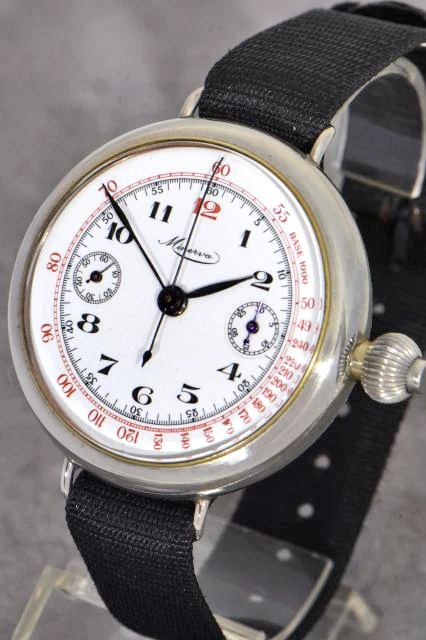 LARGE, EARLY MINERVA CHRONOGRAPH WITH RED TACHYMETER SCALE, CAL. LEMANIA 16'''