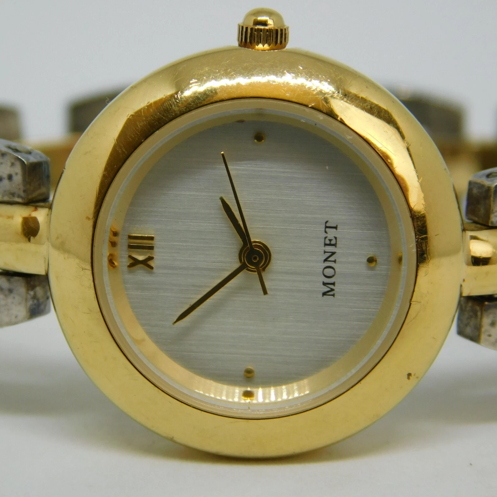 MONET Two Tone Quartz Analog Women's Watch Sz. 5 1/2" New Battery