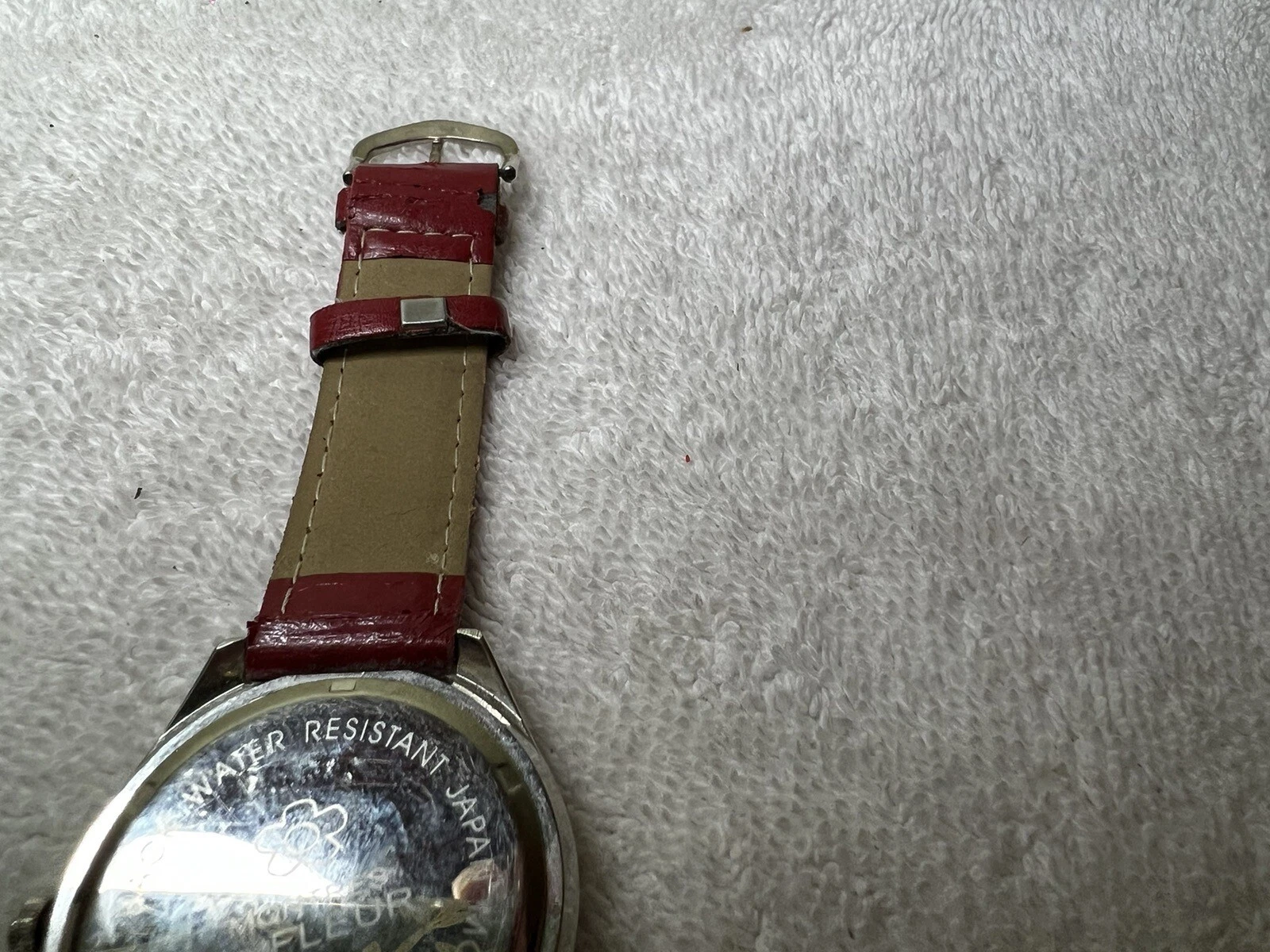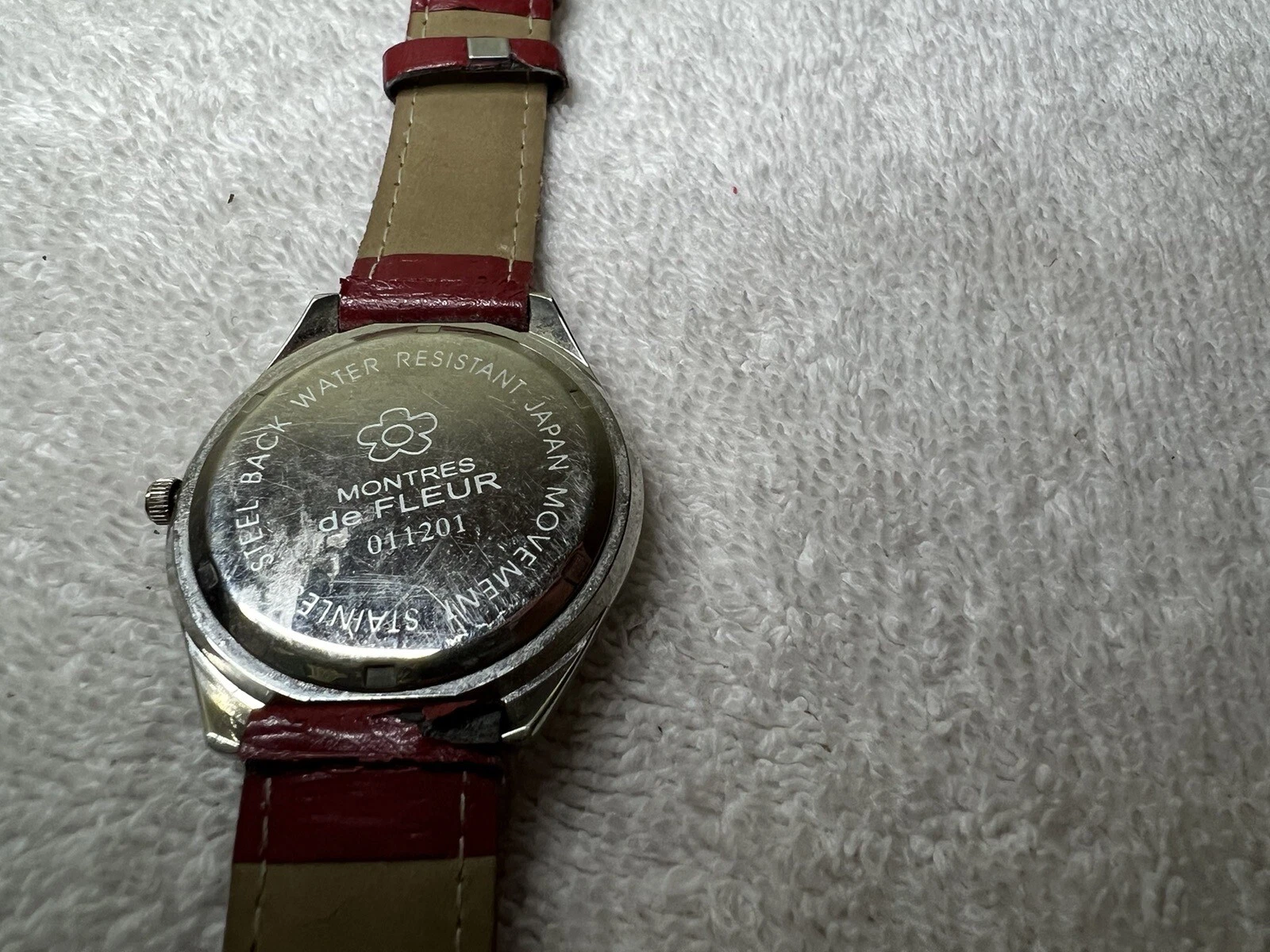 Montres De Fleur Quartz Watch Faux Croc Leather Burgundy Roman Numerals