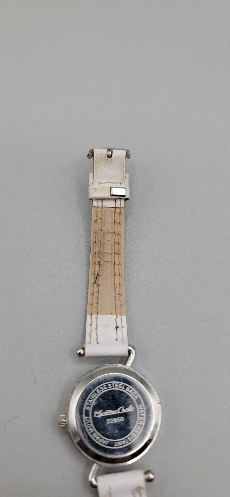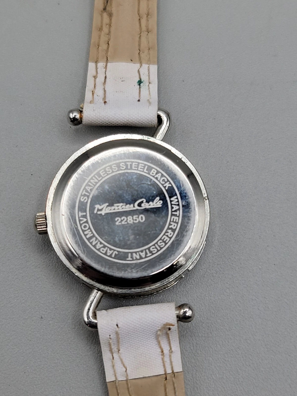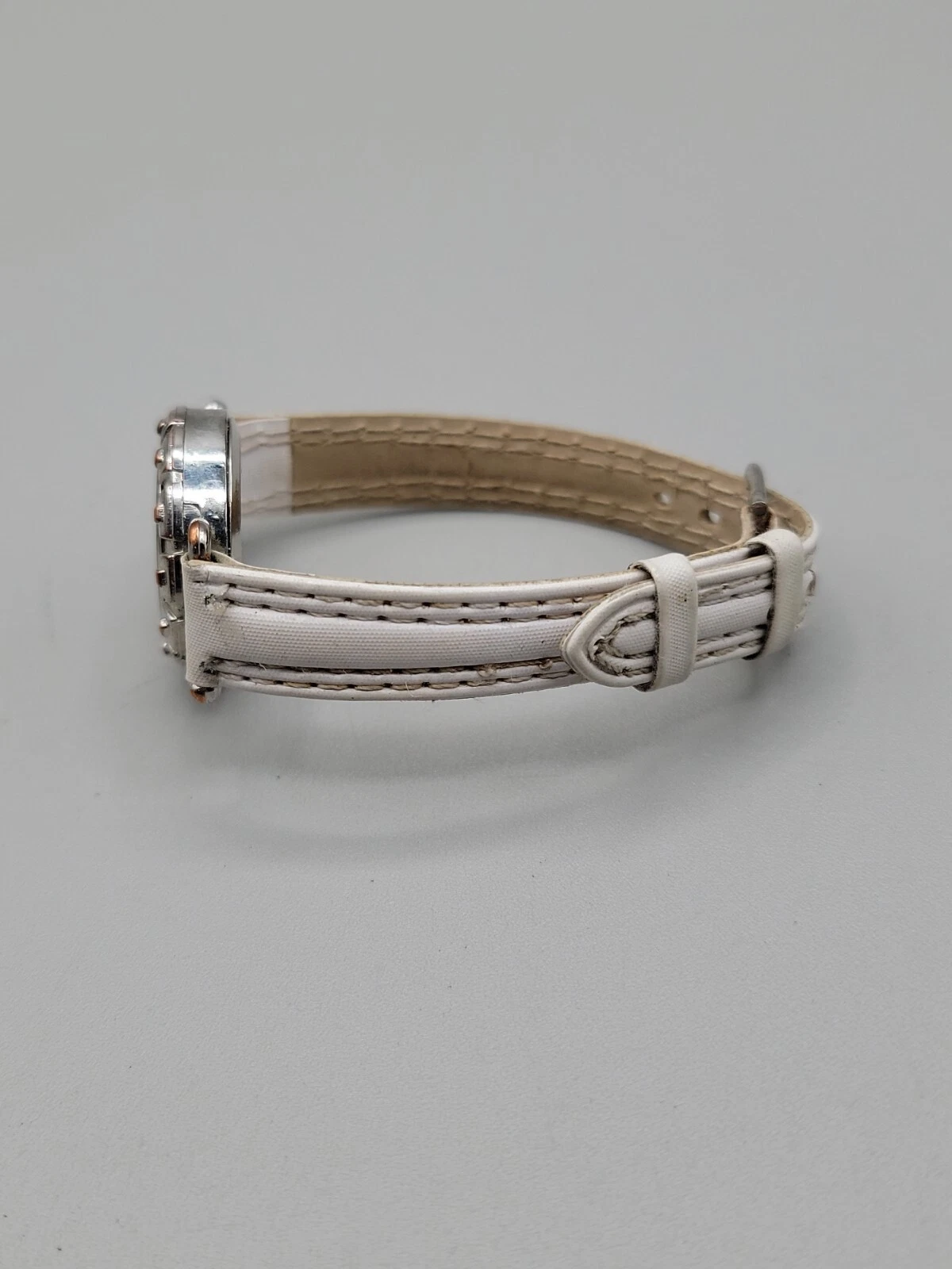 Montres Carlo Ladies Quartz Watch 25mm Dial 6.75" White Leather Band 22850
