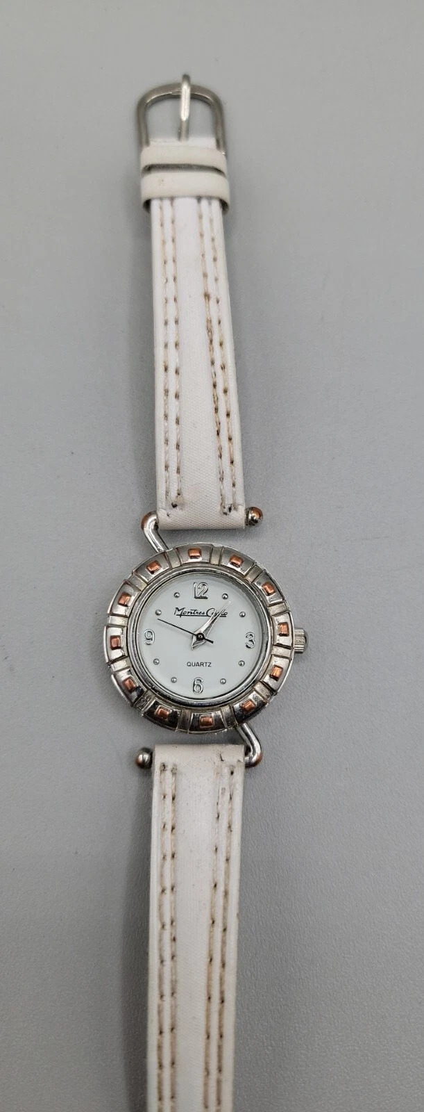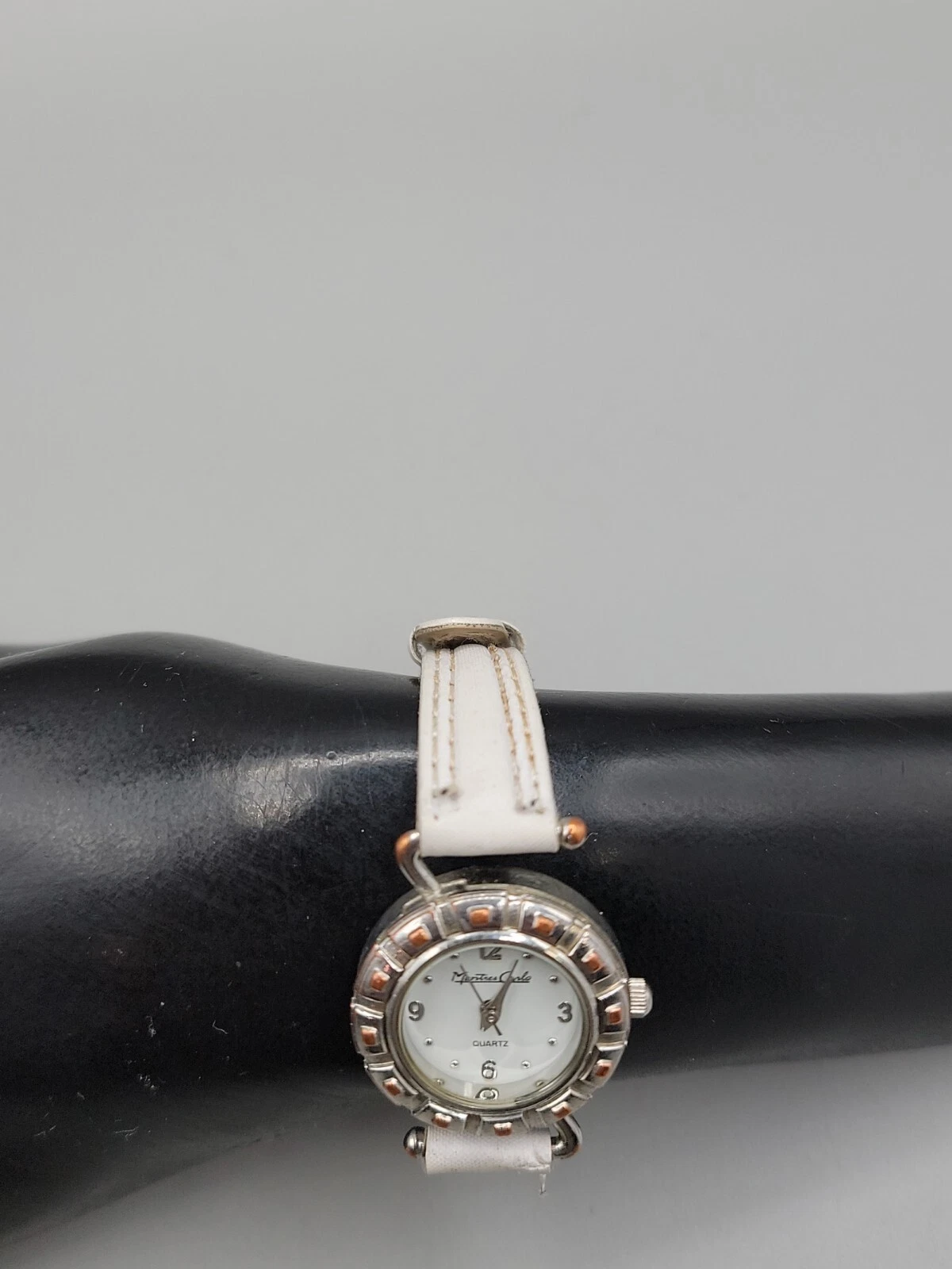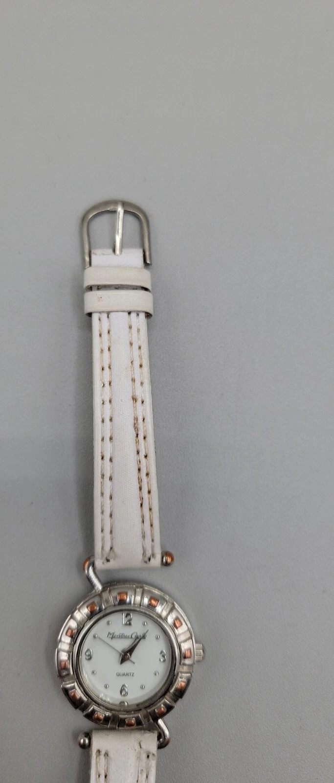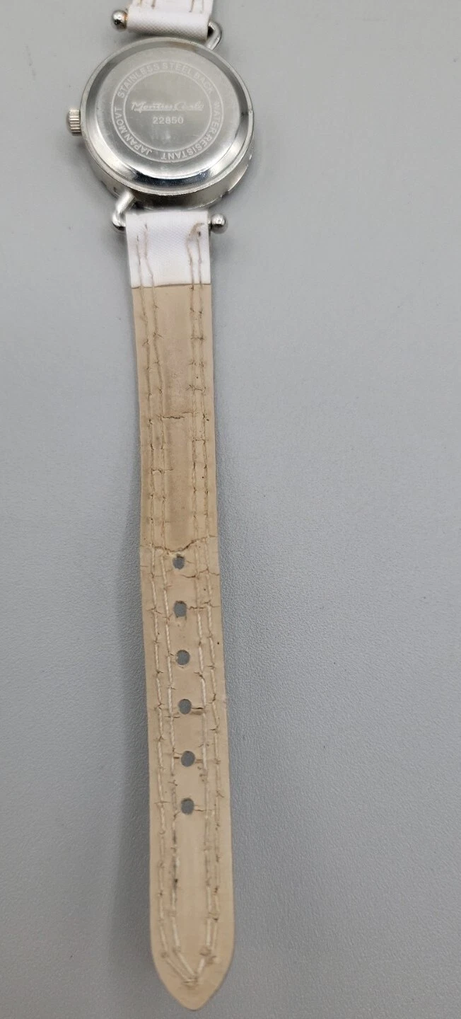 Montres Carlo Ladies Quartz Watch 25mm Dial 6.75" White Leather Band 22850