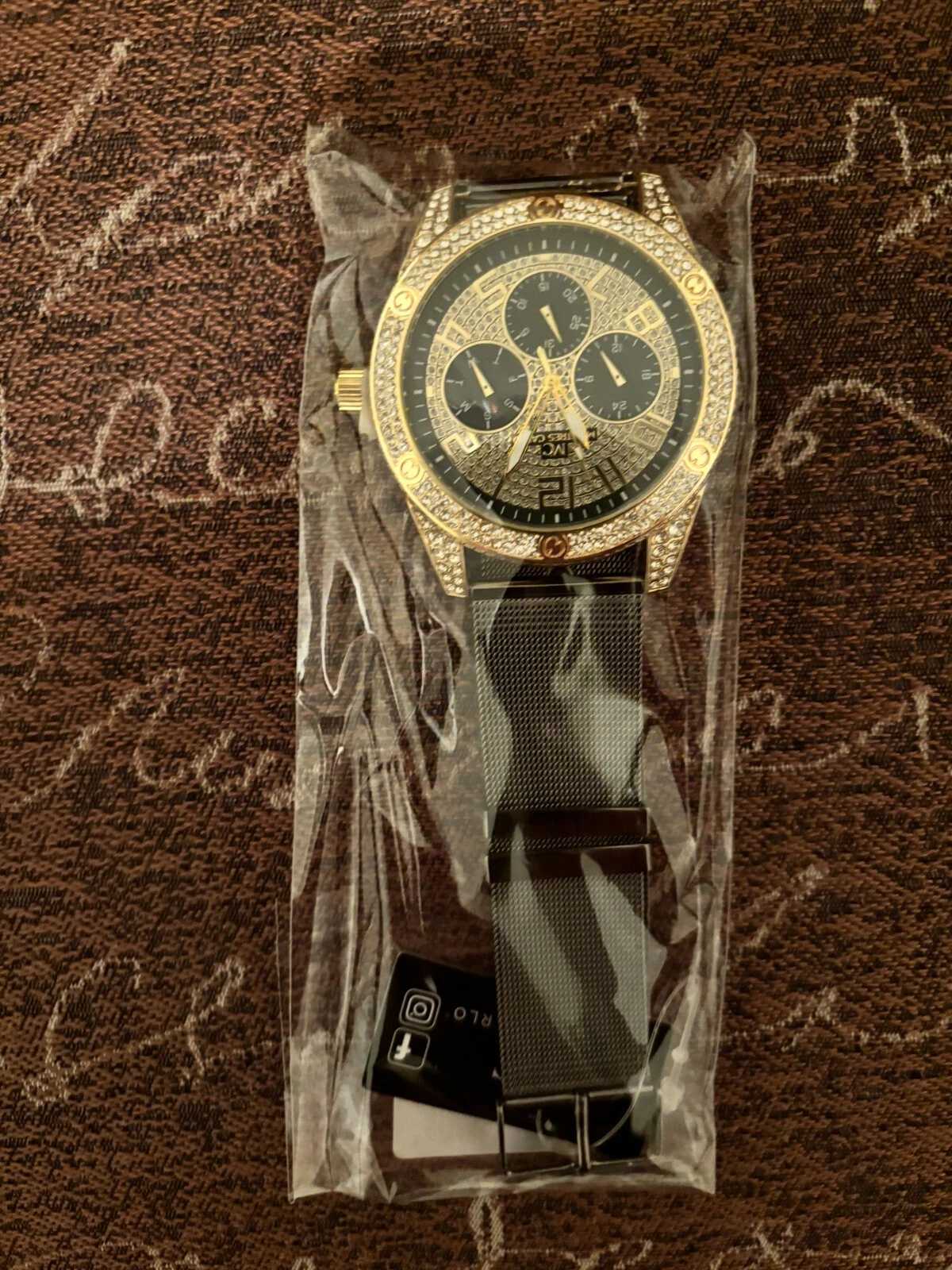5430-Montres Carlo Mesh Band Watch - Gold/Gun
